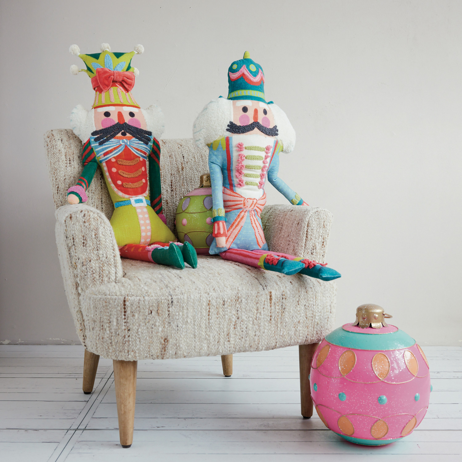 Catalog Name: 9" Round Oversized Painted Metal Ball Ornament w/ Pattern & Glitter, Green, Pink & Purple