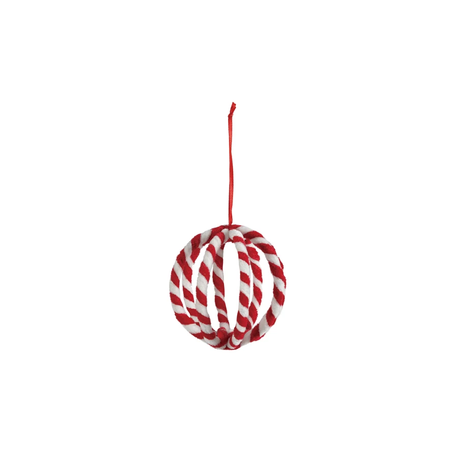Wire Fabric Wrapped Striped Ball Ornament, Red & White