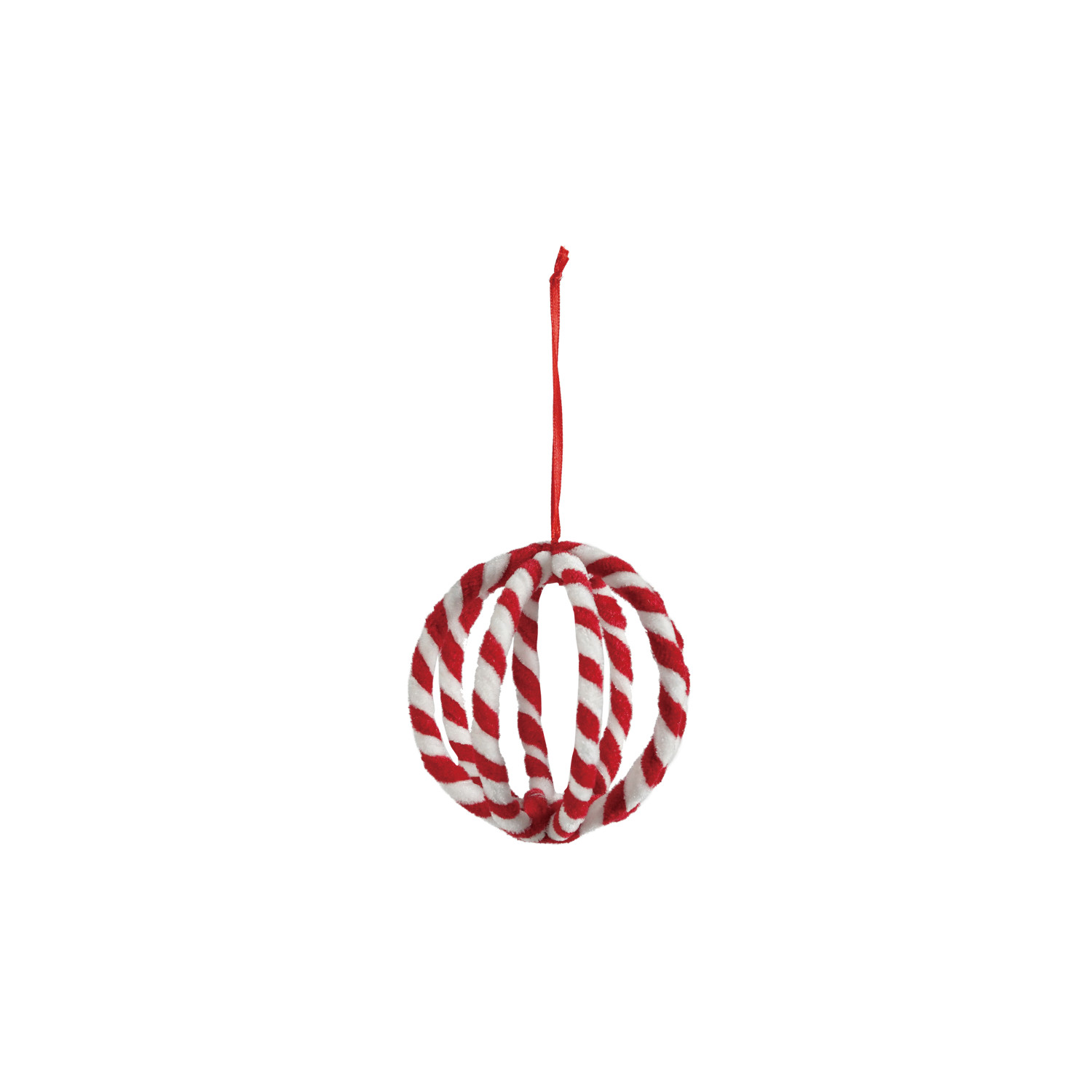 Catalog Name: 4" Round Wire Fabric Wrapped Striped Ball Ornament, Red & White