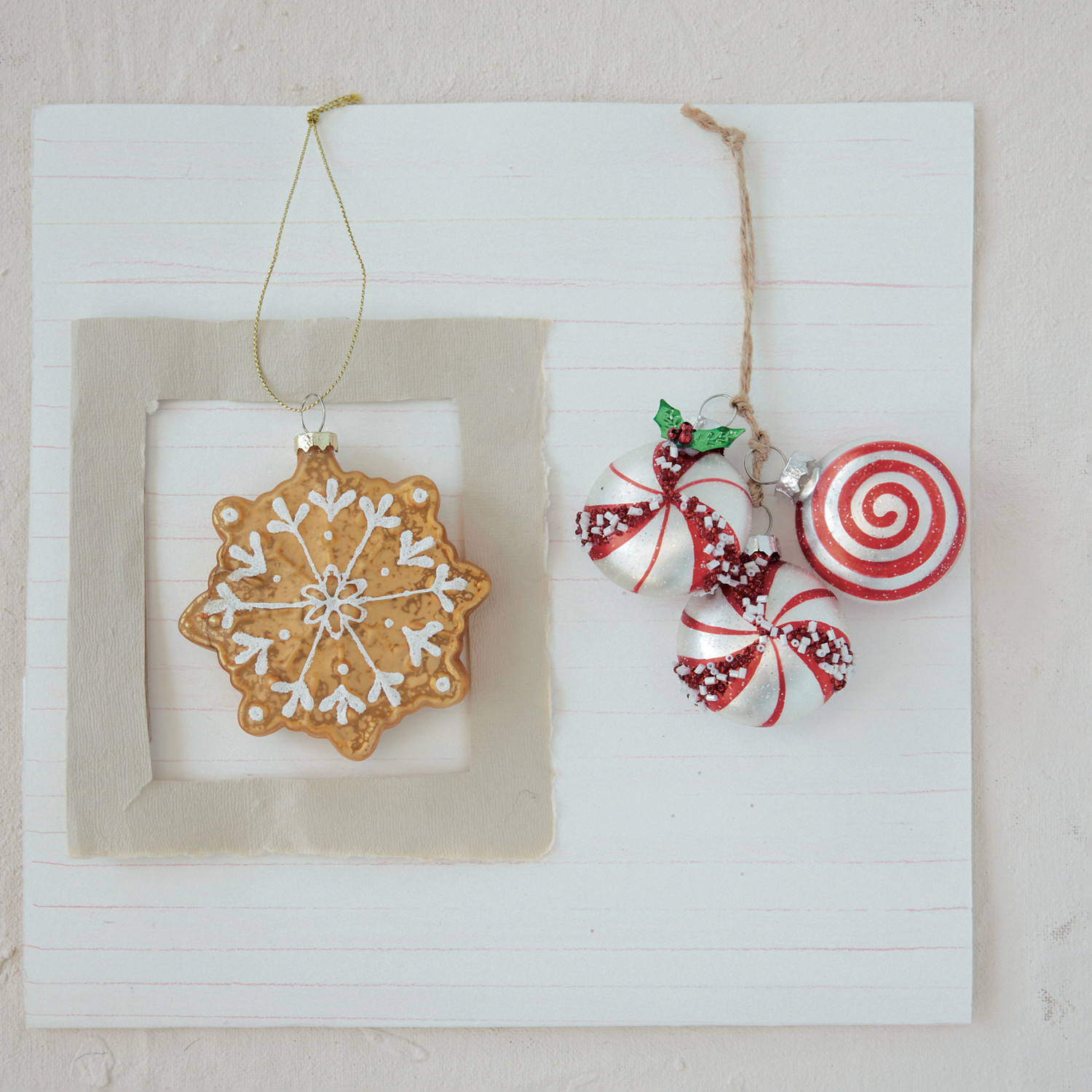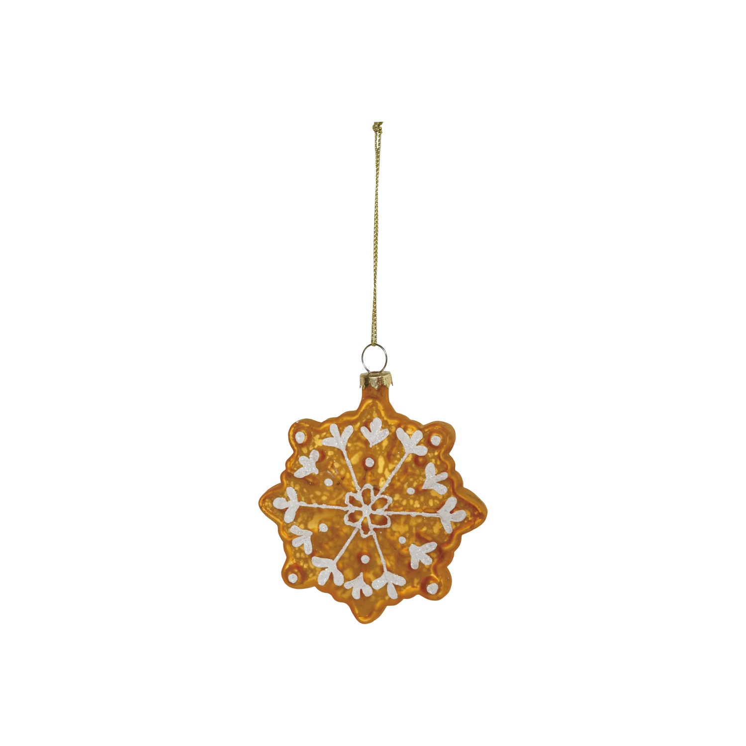 Catalog Name: 3-3/4"H Hand-Painted Mercury Glass Snowflake Gingerbread Cookie Ornament w/ Glitter, Brown & White
