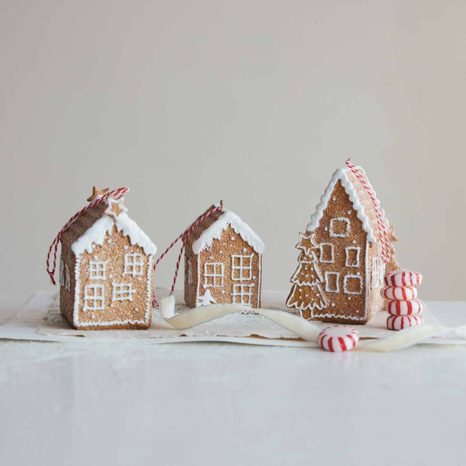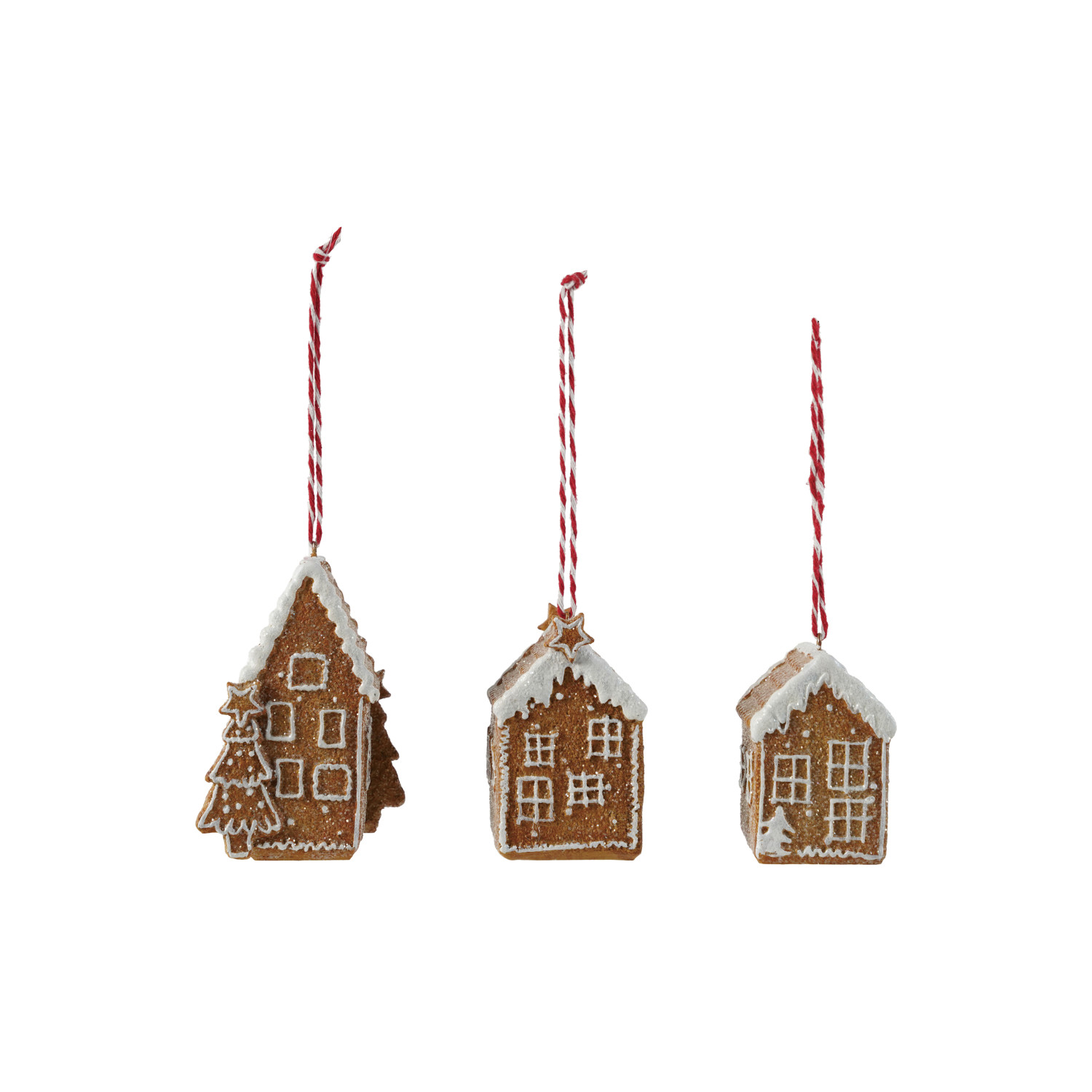 Resin Gingerbread House Ornament with Glitter, Brown & White, 3 Styles