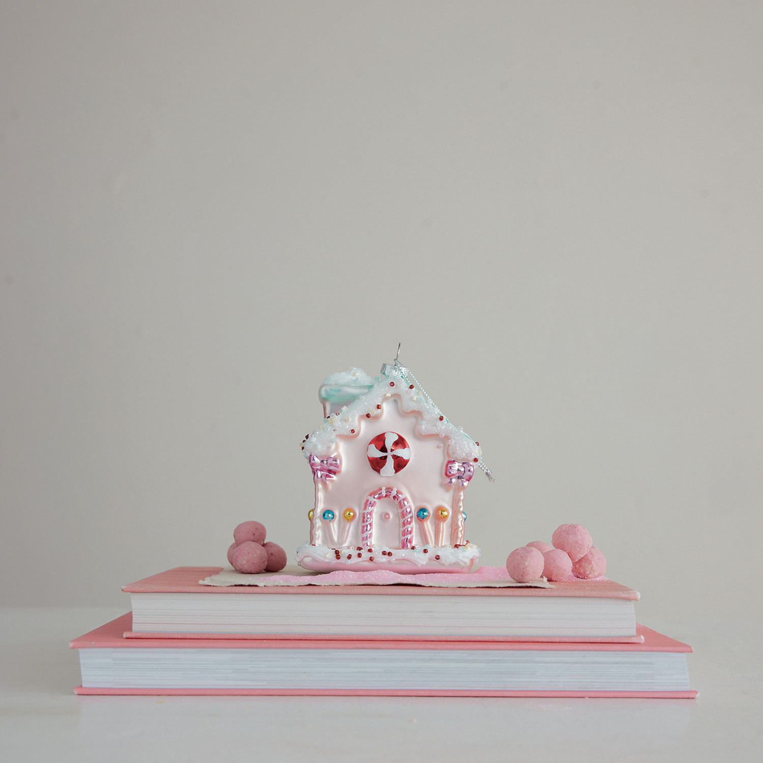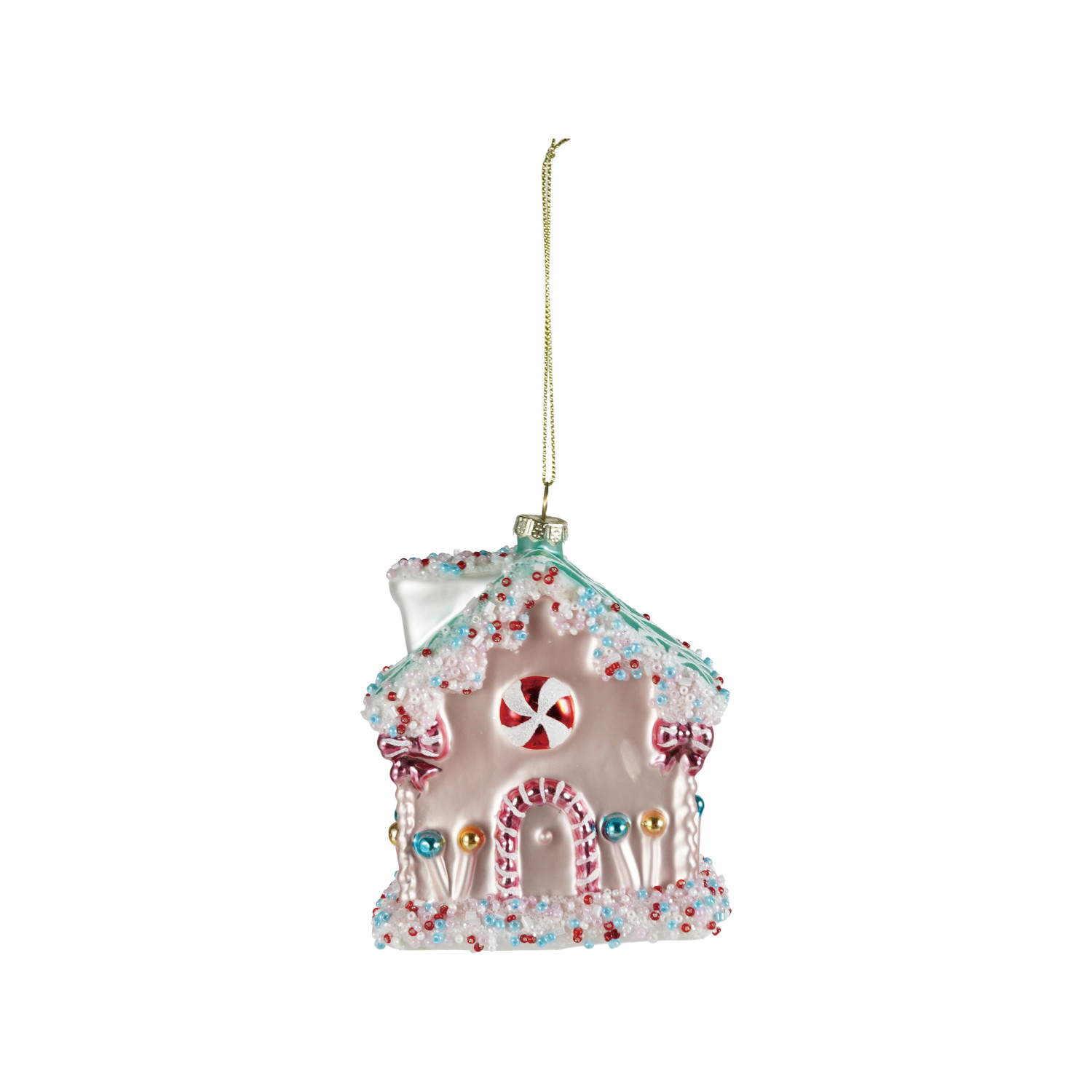 Hand-Painted Glass Candy House Ornament with Glitter & Beads