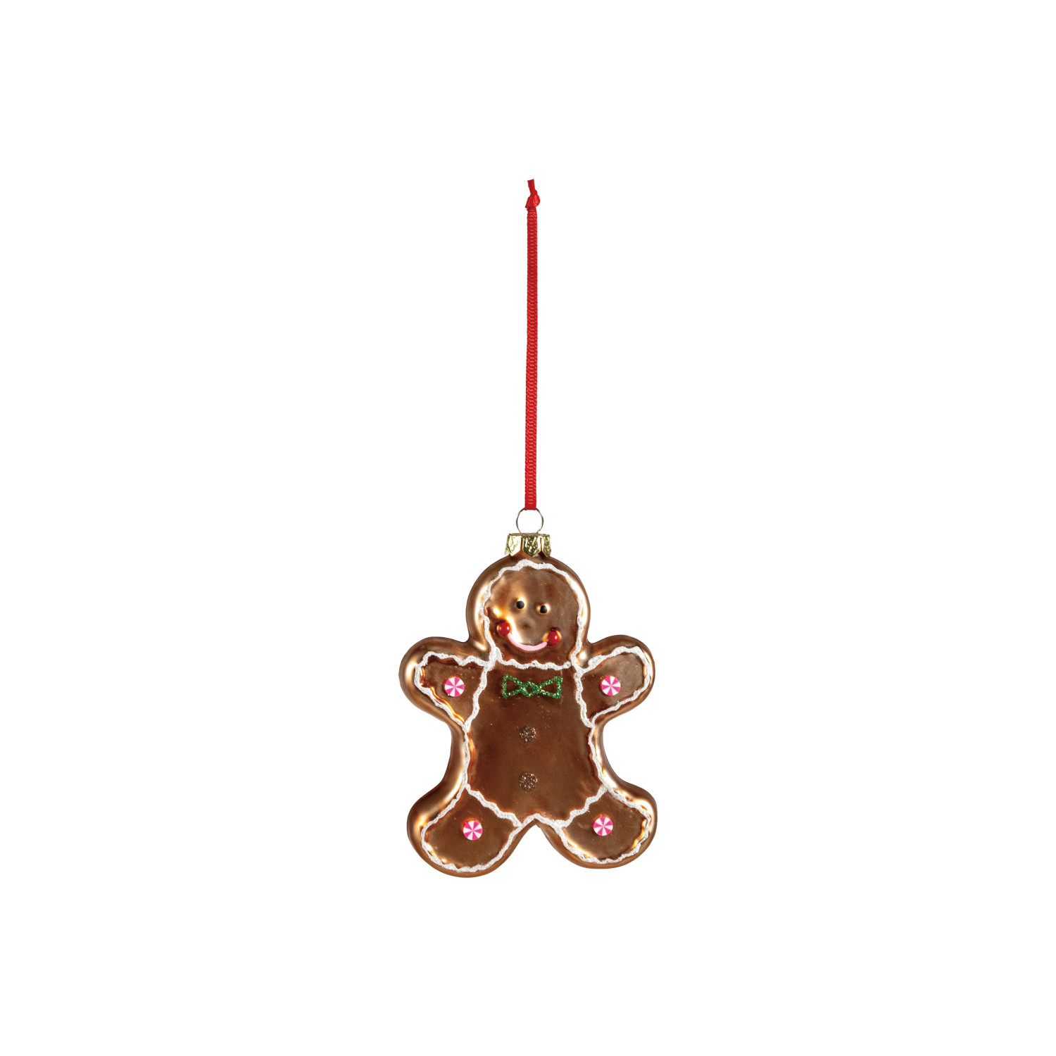 Catalog Name: 4-1/2"H Hand-Painted Glass Gingerbread Cookie Ornament w/ Glitter, Multi Color