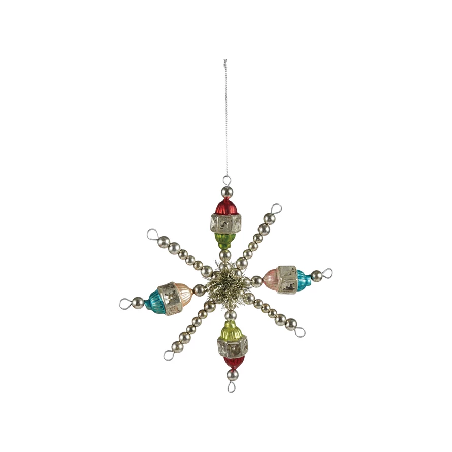 Catalog Name: 6-3/4"H Glass Snowflake Ornament w/ Tinsel, Multi Color