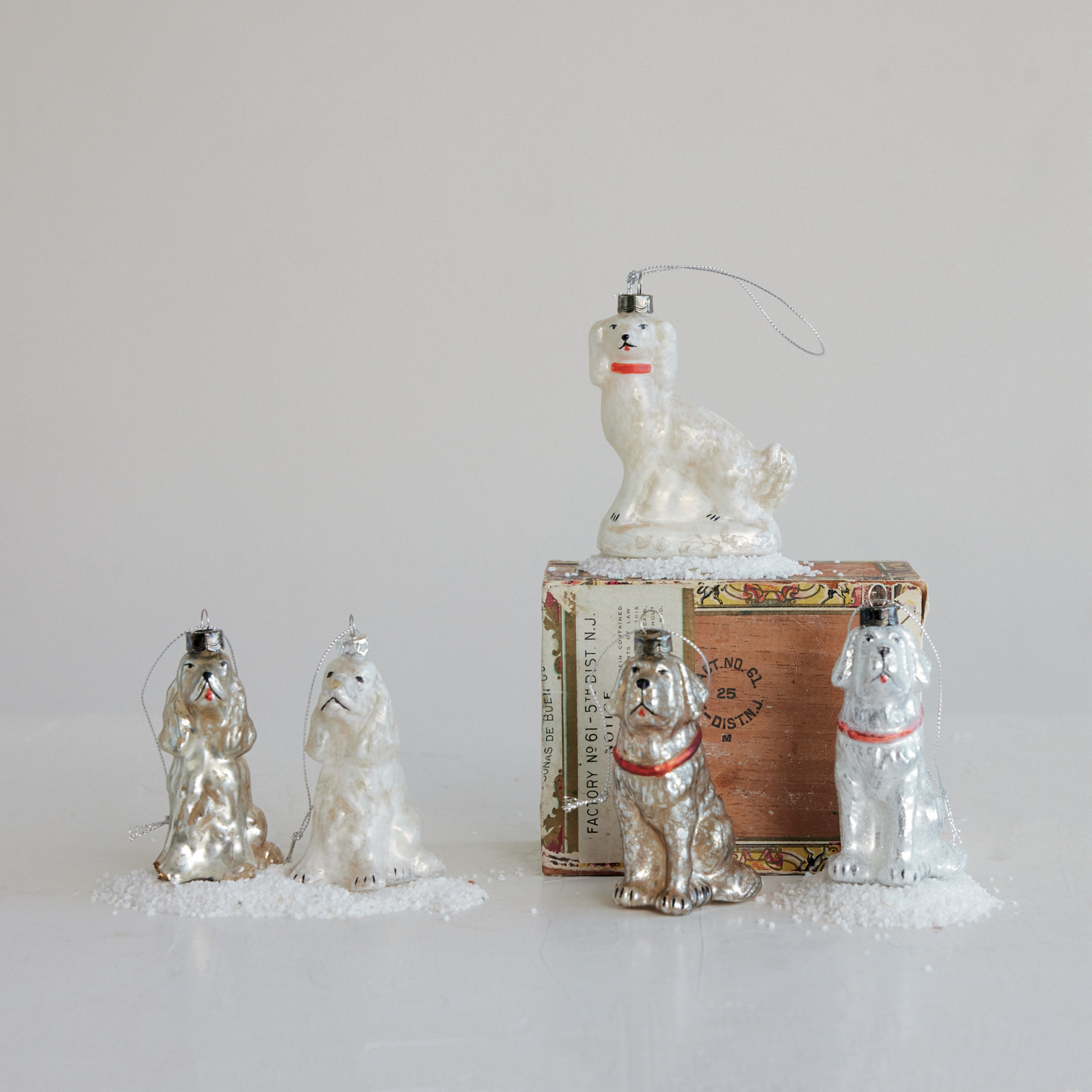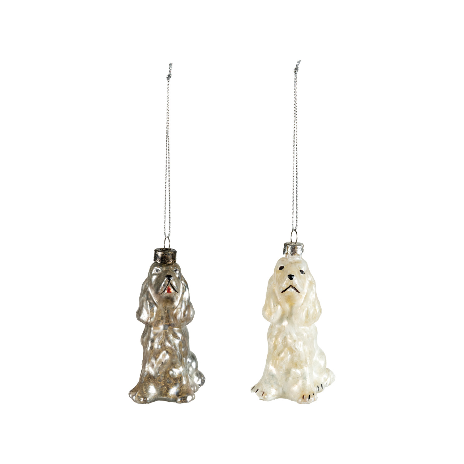 Catalog Name: 3-3/4"H Hand-Painted Mercury Glass Vintage Reproduction Spaniel Ornament, 2 Colors