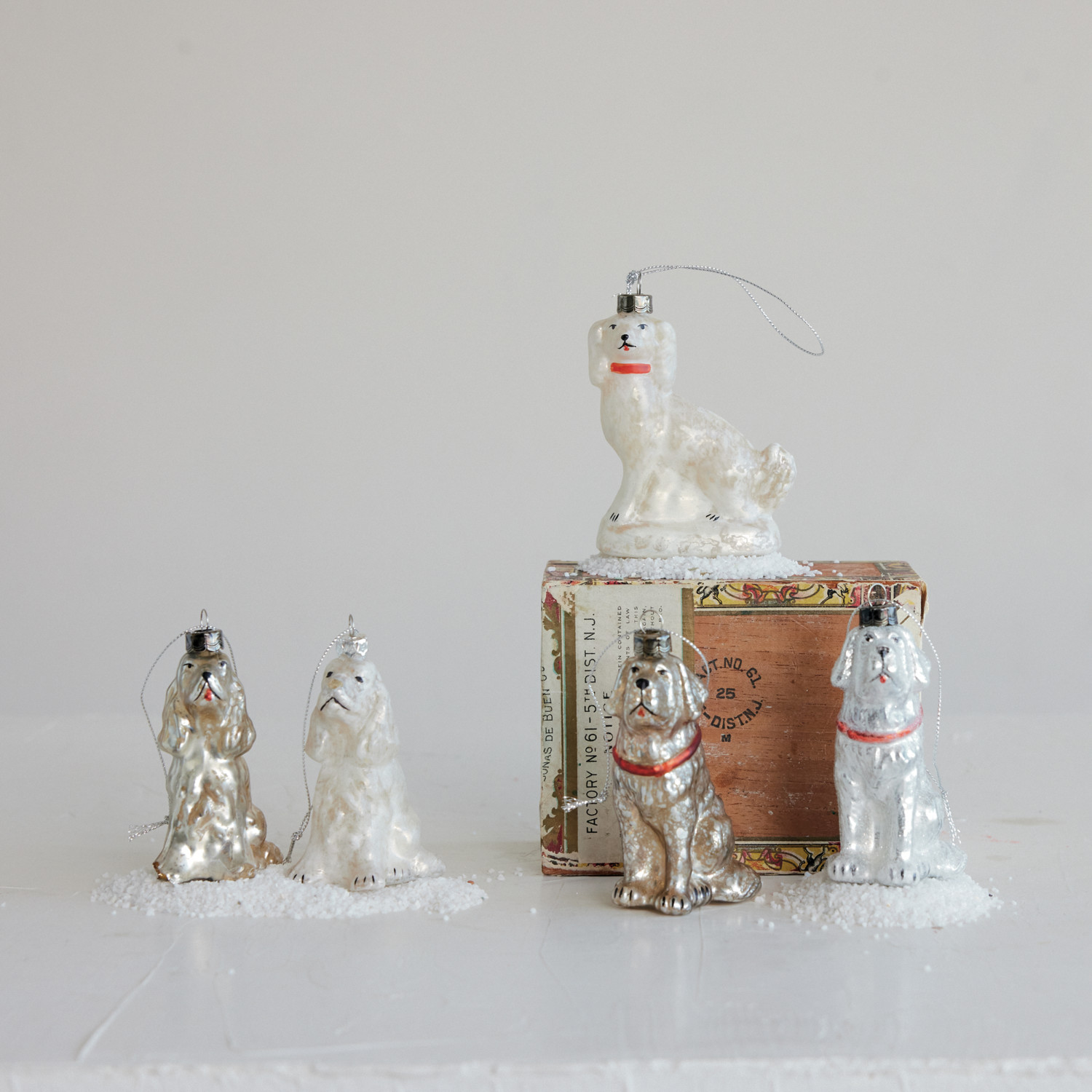 Catalog Name: 4-1/4"H Hand-Painted Mercury Glass Vintage Reproduction Dog Ornament, 2 Colors