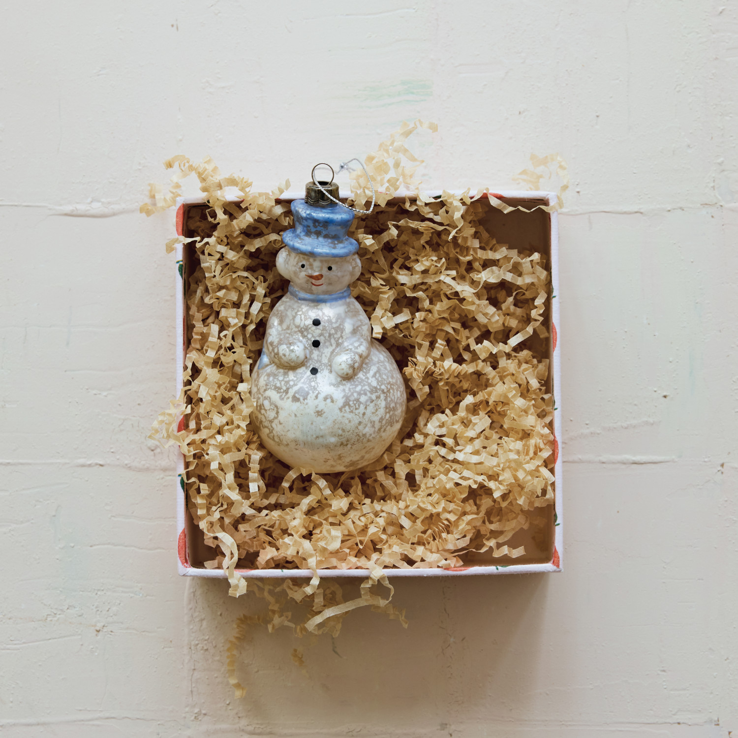 Hand-Painted Mercury Glass Snowman Ornament, White, Blue & Orange Color