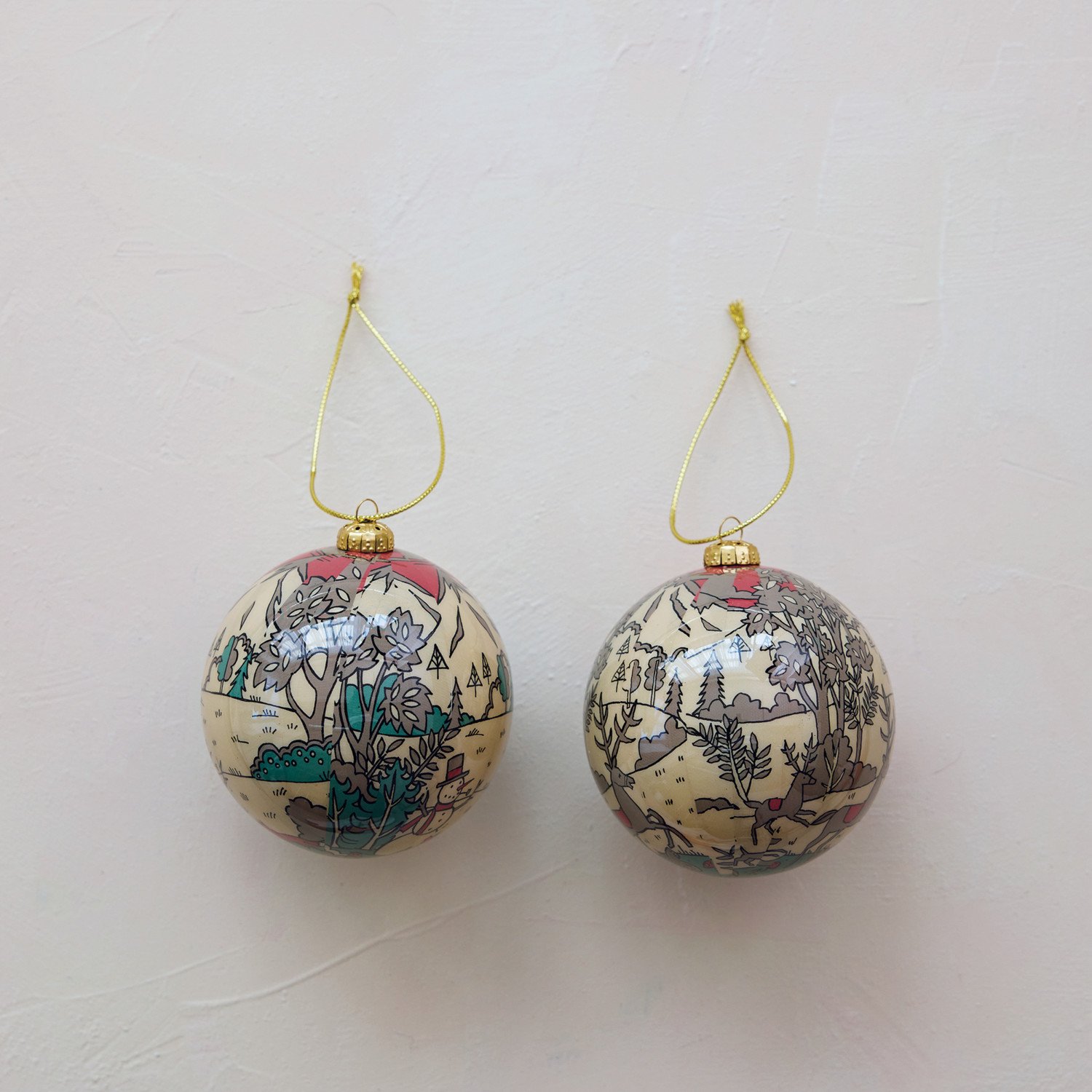 Catalog Name: 4" Round Decoupage Ball Ornament w/ Winter Scene & Reindeer, Multi Color, 2 Styles ©