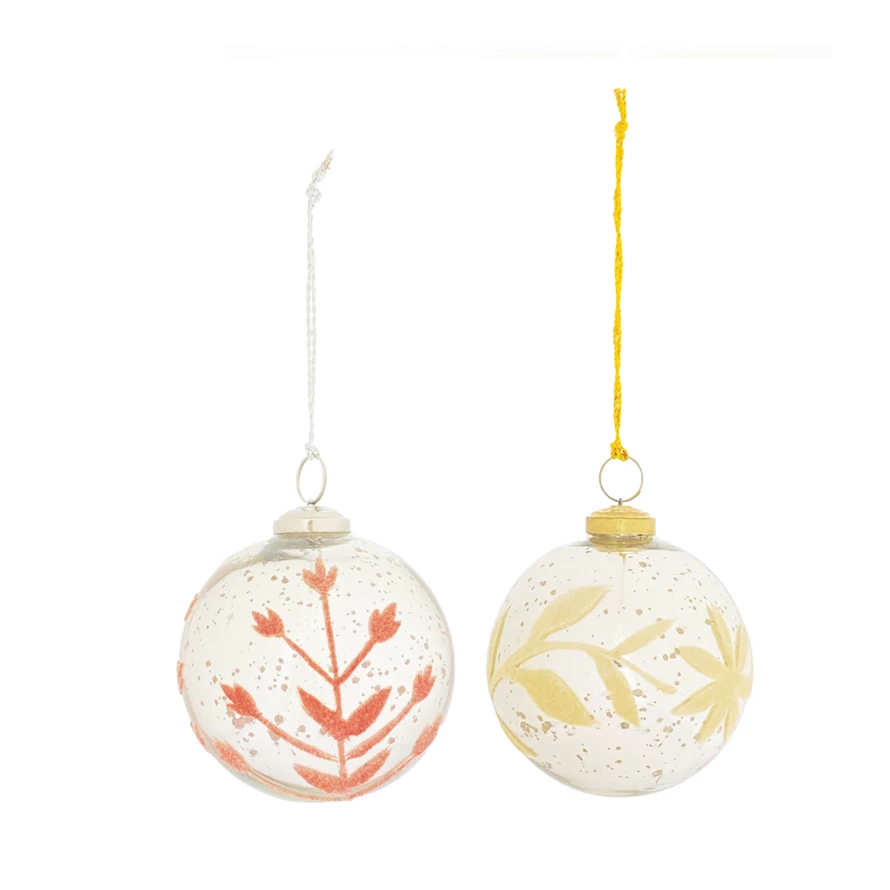Catalog Name: 3" Round Mercury Glass Ball Ornament w/ Flocked Pattern, Multi Color, 2 Styles