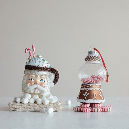 Catalog Name: 3"H - 3-1/2"H Hand-Painted Glass Teapot Ornament w/ Flower, 2 Styles