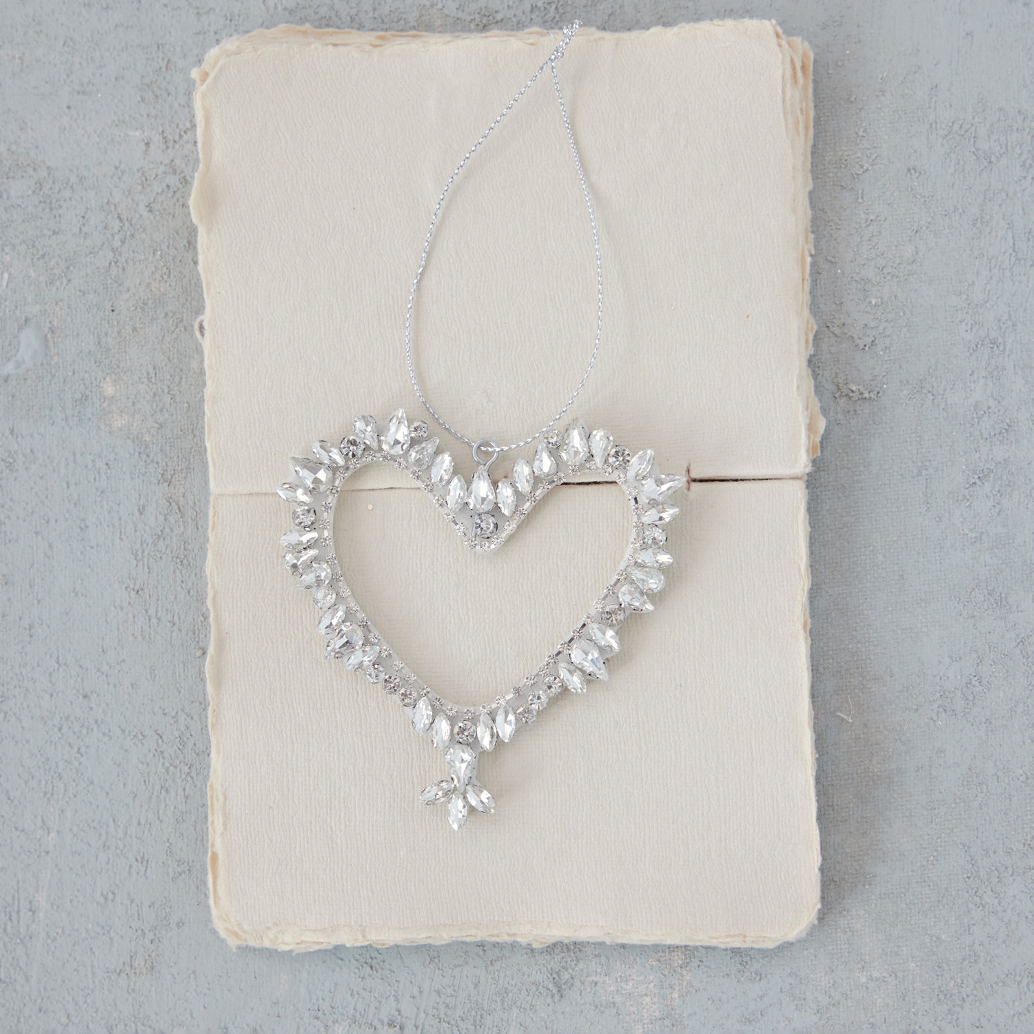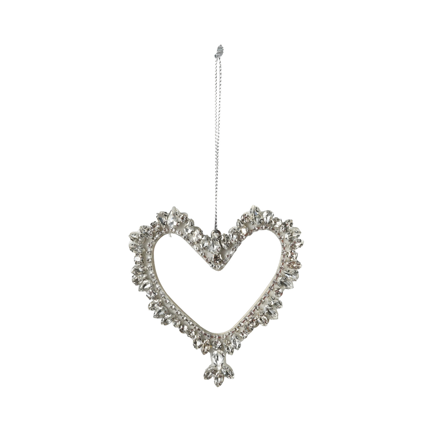 Metal Heart Ornament with Acrylic Jewels, Silver Finish