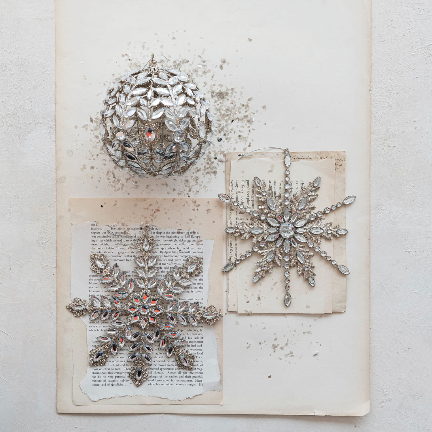 Metal Snowflake Ornament with Acrylic Jewels & Glitter, 2 Styles