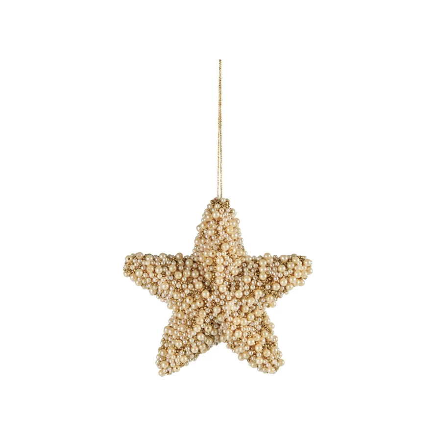 Foam Star Ornament with Faux Pearls, Gold Finish