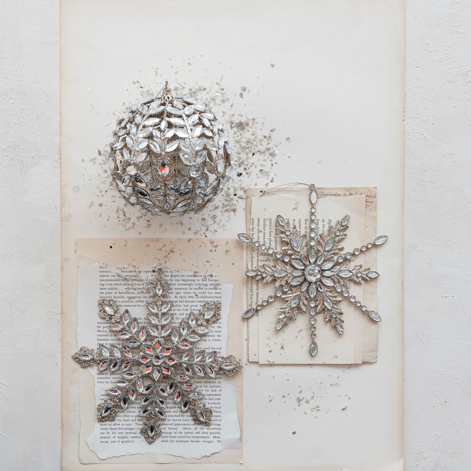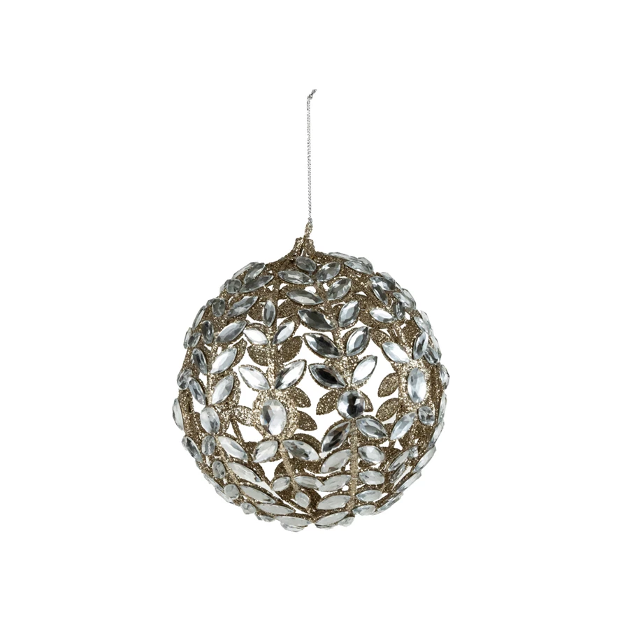 Catalog Name: 6" Round Metal Ball Ornament w/ Acrylic Jewels & Glitter, Champagne Finish
