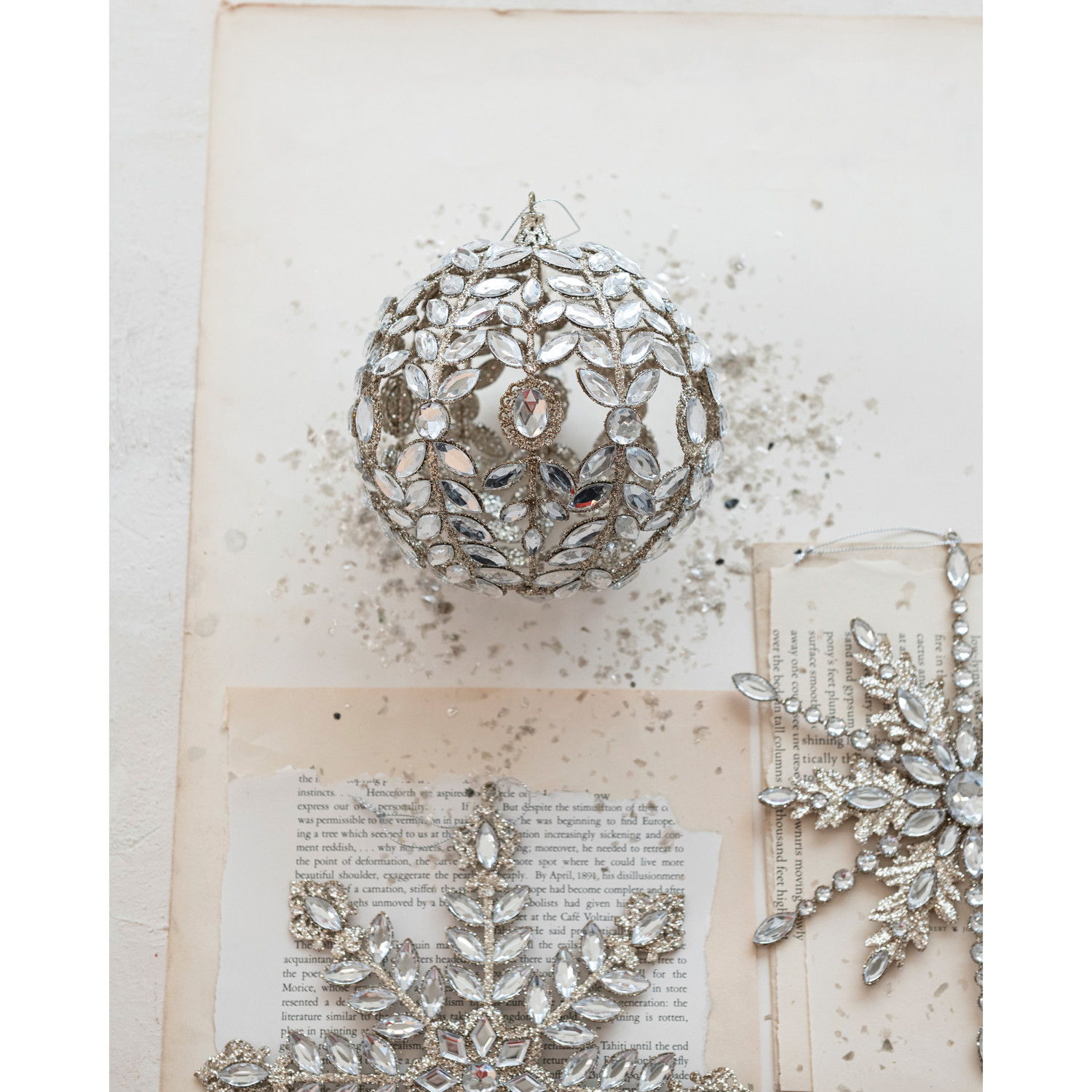 Metal Ball Ornament with Acrylic Jewels & Glitter