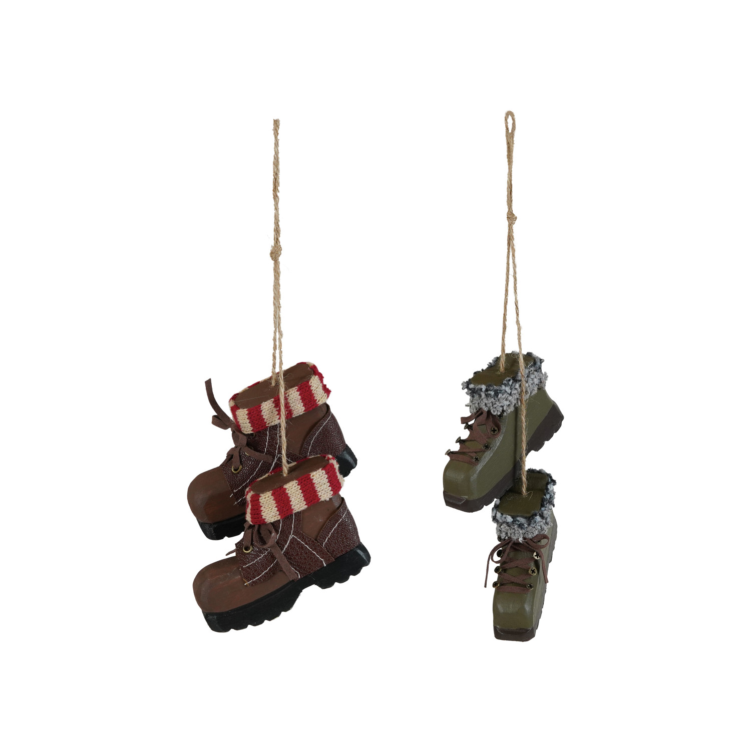 Catalog Name: 3-1/2"L Wood & Knit Fabric Pair of Hiking Boots Ornament, Multi Color, 2 Styles