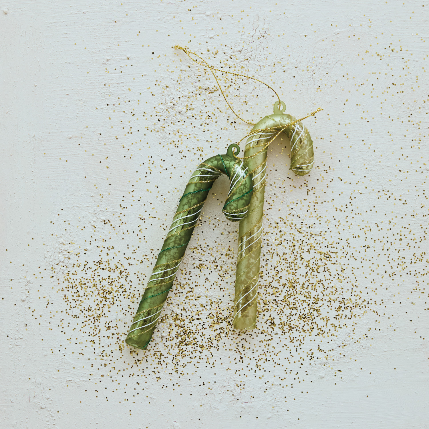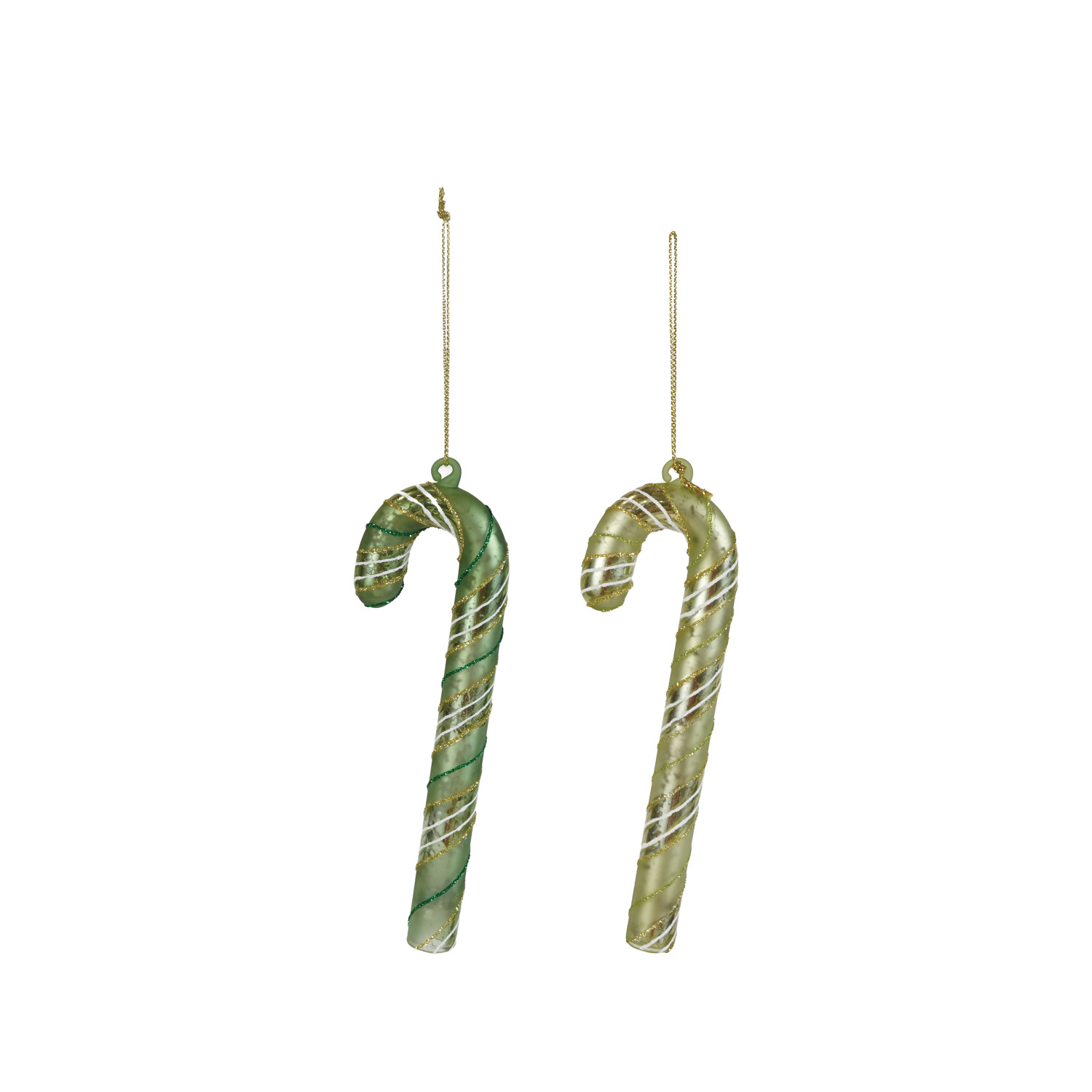 Glass Candy Cane Ornament with Stripes & Glitter, 2 Colors ©