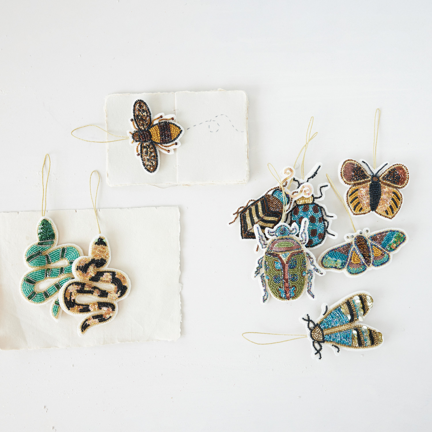Catalog Name: 4"L x 3"H Handmade Fabric Beaded Bee Ornament, Multi Color