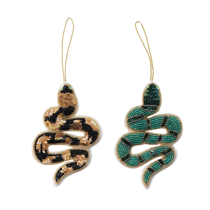 Handmade Fabric Beaded Snake Ornament with Sequins, 2 Styles