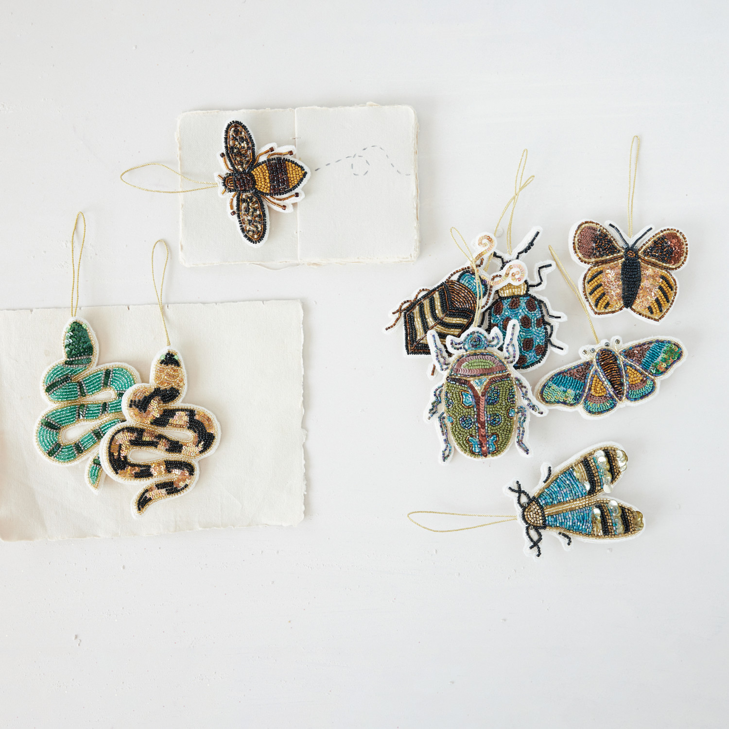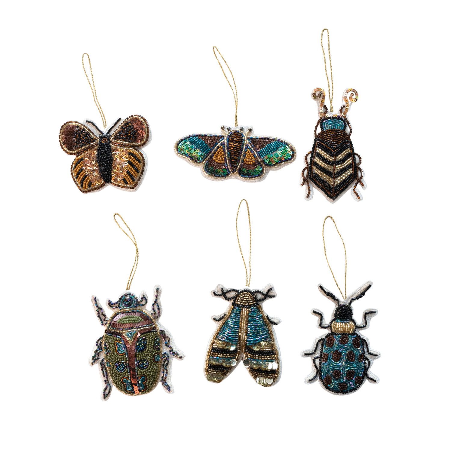 Handmade Fabric Beaded Insect Ornament with Sequins, 6 Styles