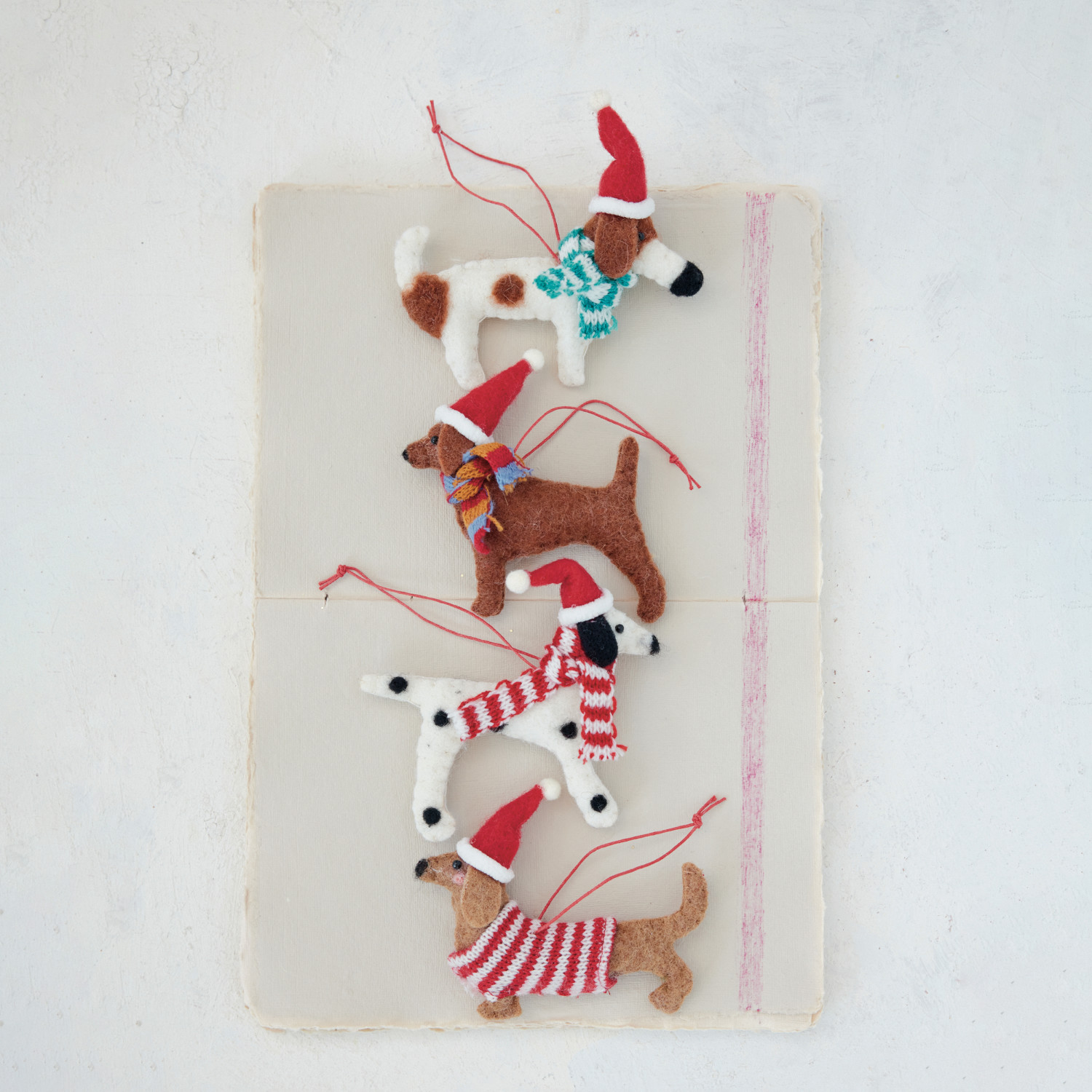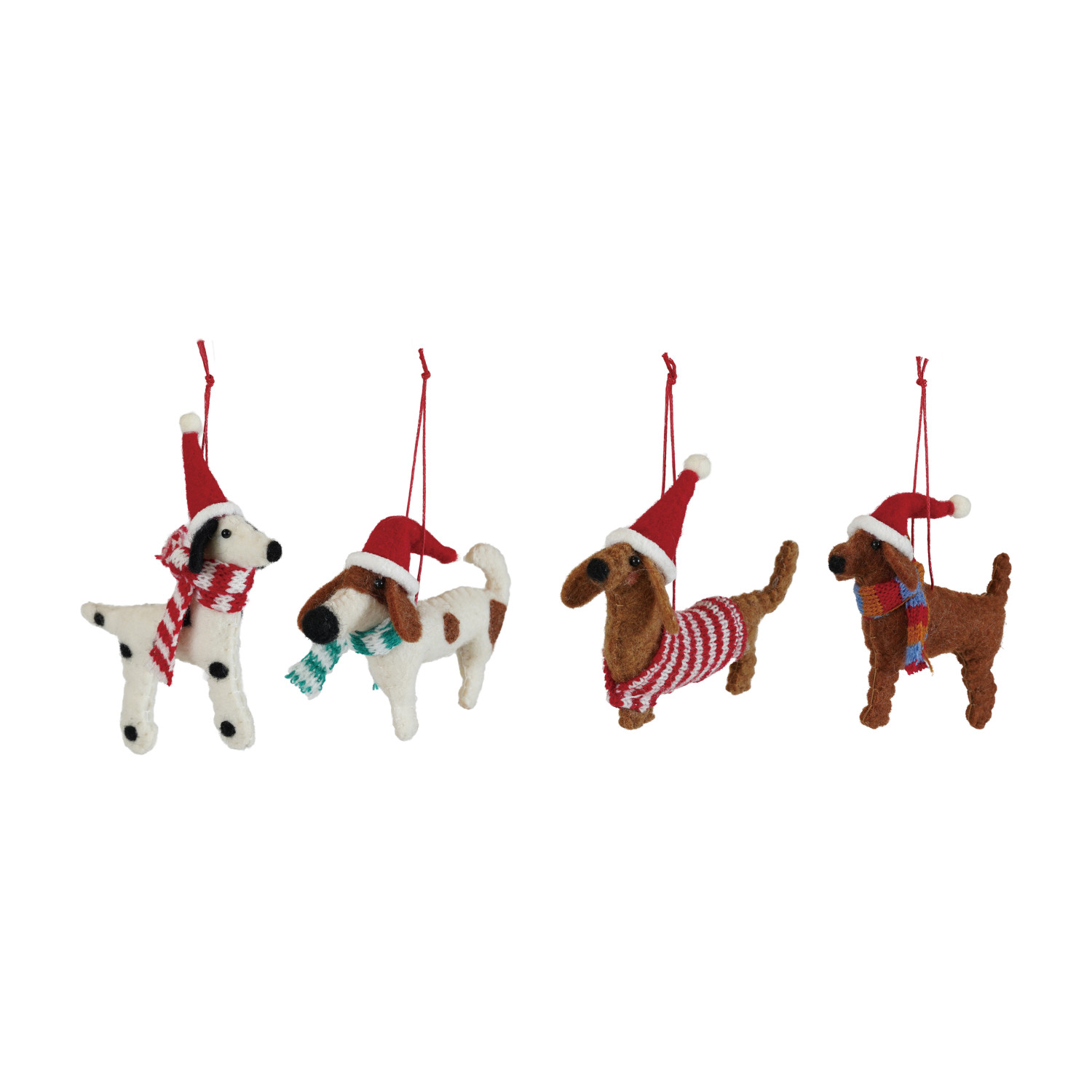 Catalog Name: Approximately 5"L Wool Felt Dog in Hat & Scarf/Sweater Ornament, Multi Color, 4 Styles