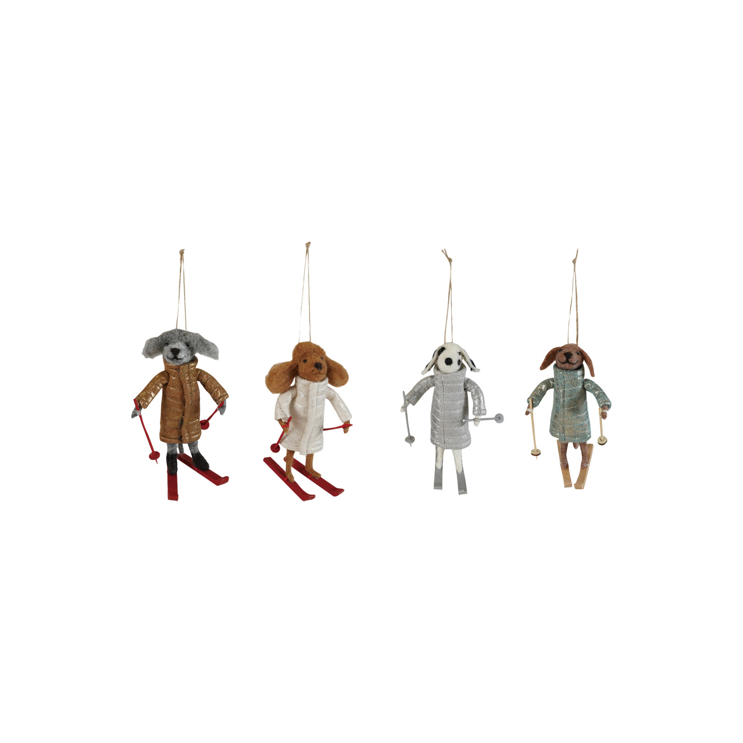 Catalog Name: 5-1/2"H - 6-1/2"H Wool Felt Dog w/ Skis & Coat, Multi Color, 4 Styles
