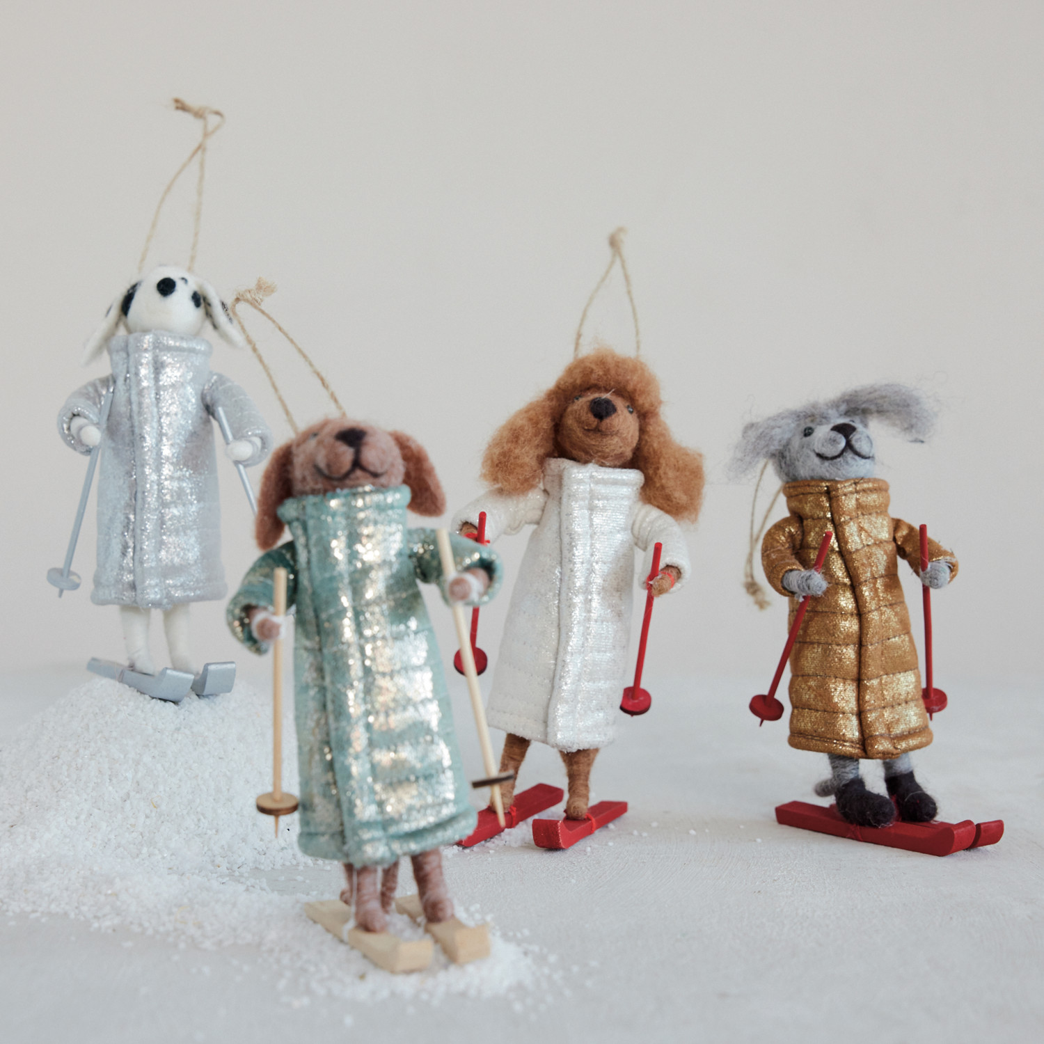 Wool Felt Dog with Skis & Coat, 4 Styles