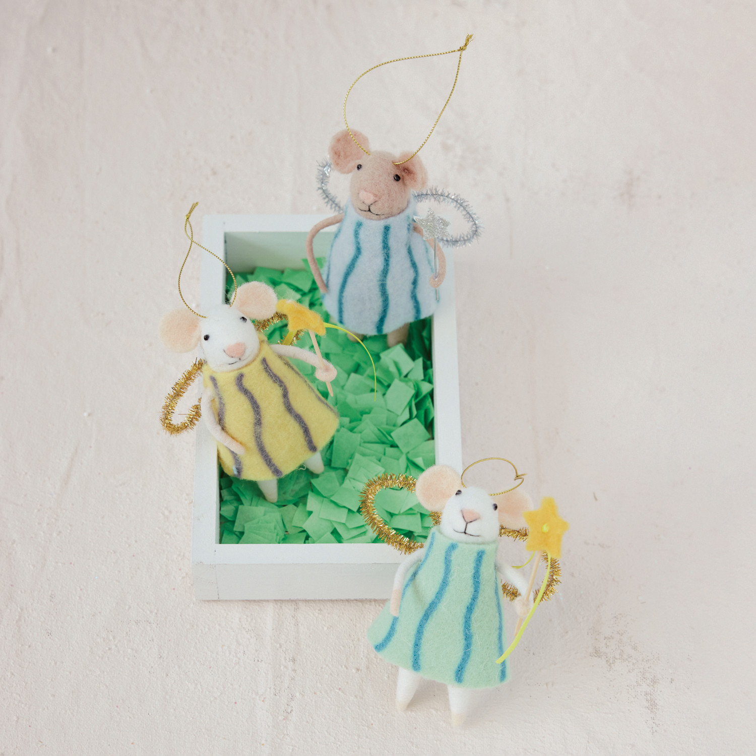 Wool Felt Fairy Mouse Ornament, 3 Styles