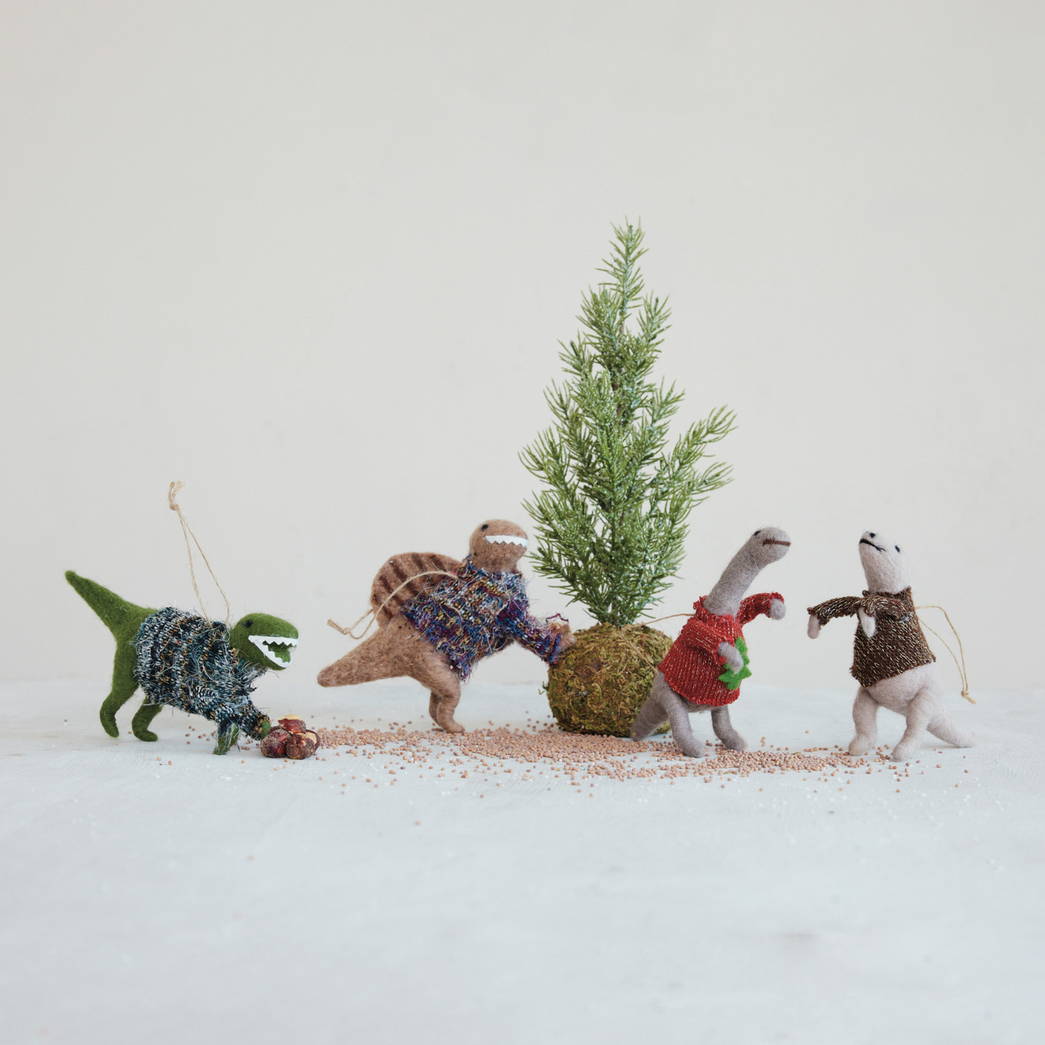 Wool Felt Dinosaur in Sweater Ornament, 4 Styles