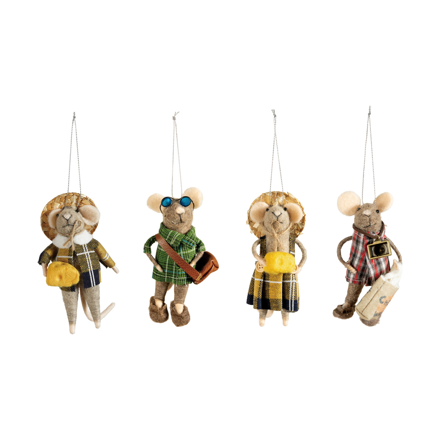 Catalog Name: 4-1/2"H Wool Felt Tourist Mouse Ornament, Multi Color, 4 Styles