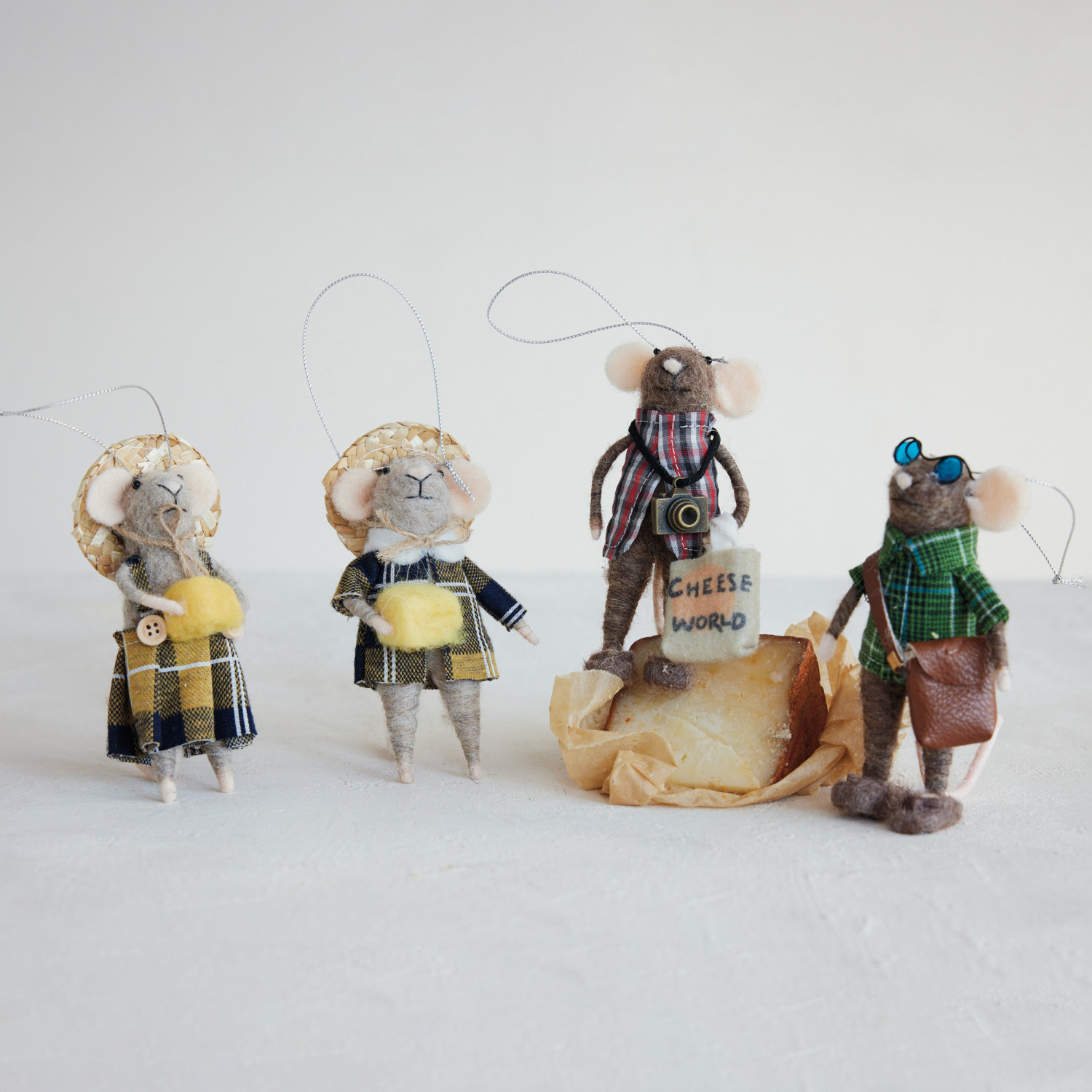Wool Felt Tourist Mouse Ornament, 4 Styles