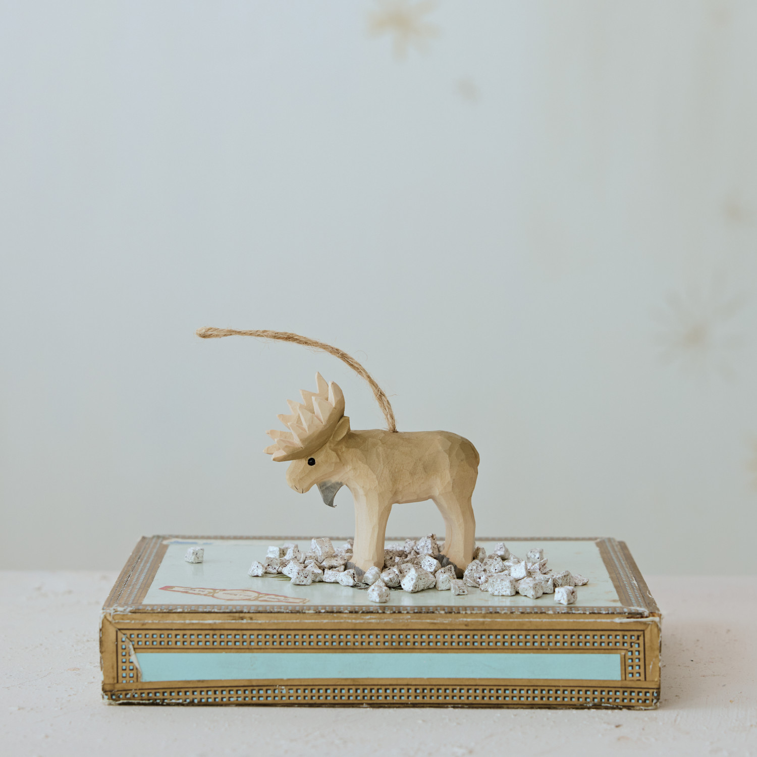 Hand-Carved Wood Moose Ornament, Natural