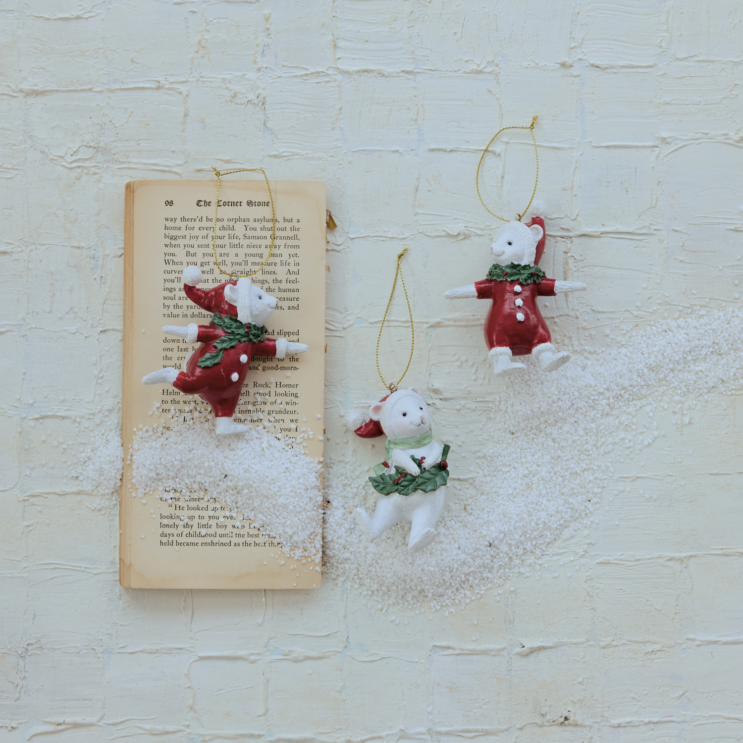 Catalog Name: 3-1/4"H Resin Mouse Ornament, White, Red & Green, 3 Styles