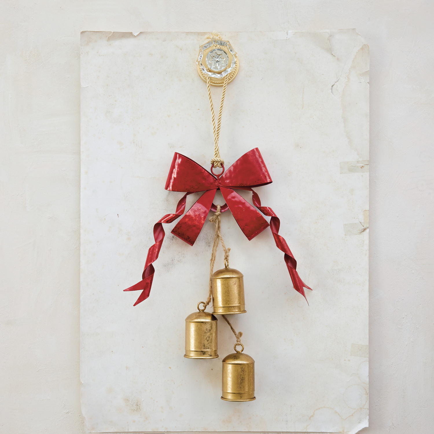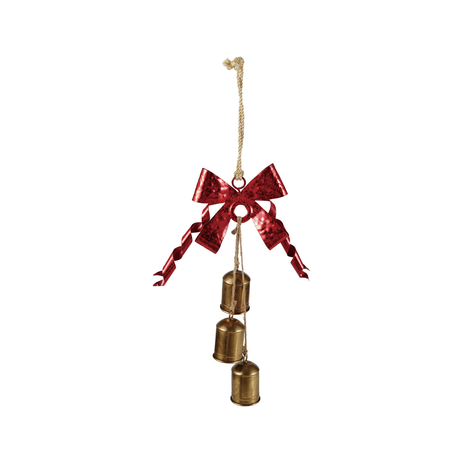 Catalog Name: 15-3/4"H Hanging Metal Bells w/ Bow, Gold Finish & Red