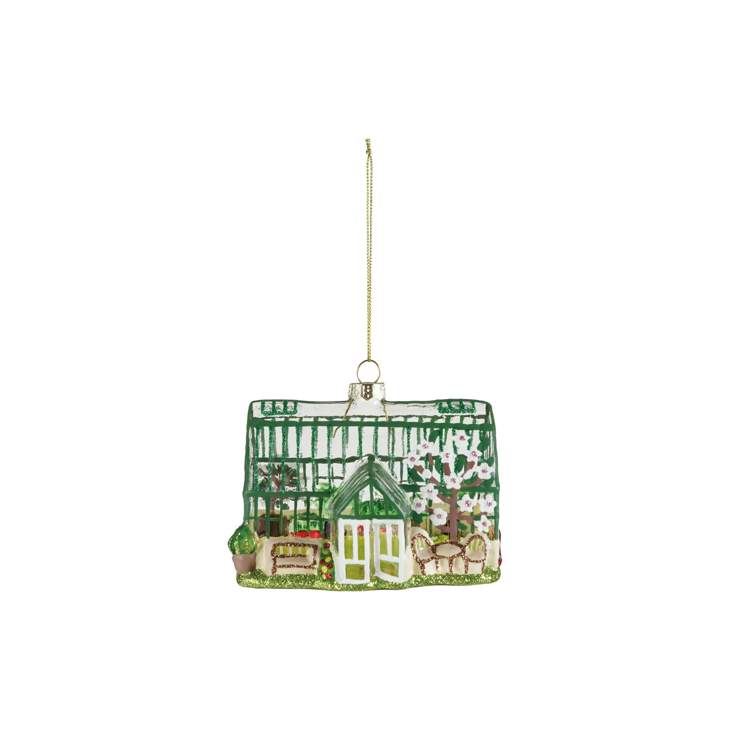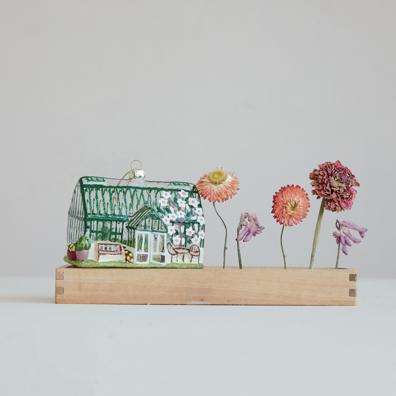 Hand-Painted Glass Greenhouse Ornament with Glitter