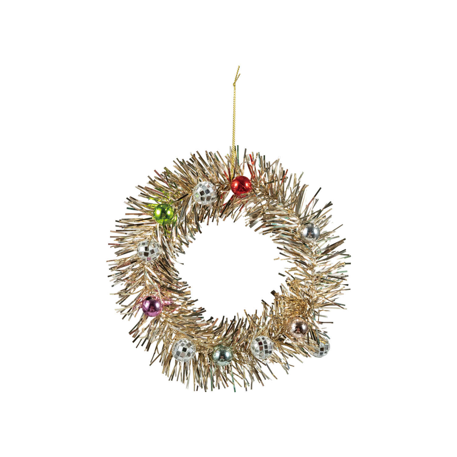 Tinsel Wreath Ornament with Mirror Balls & Ornaments