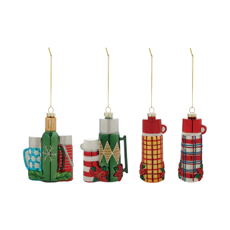 Glass Thermos Ornament with Glitter, 4 Styles ©
