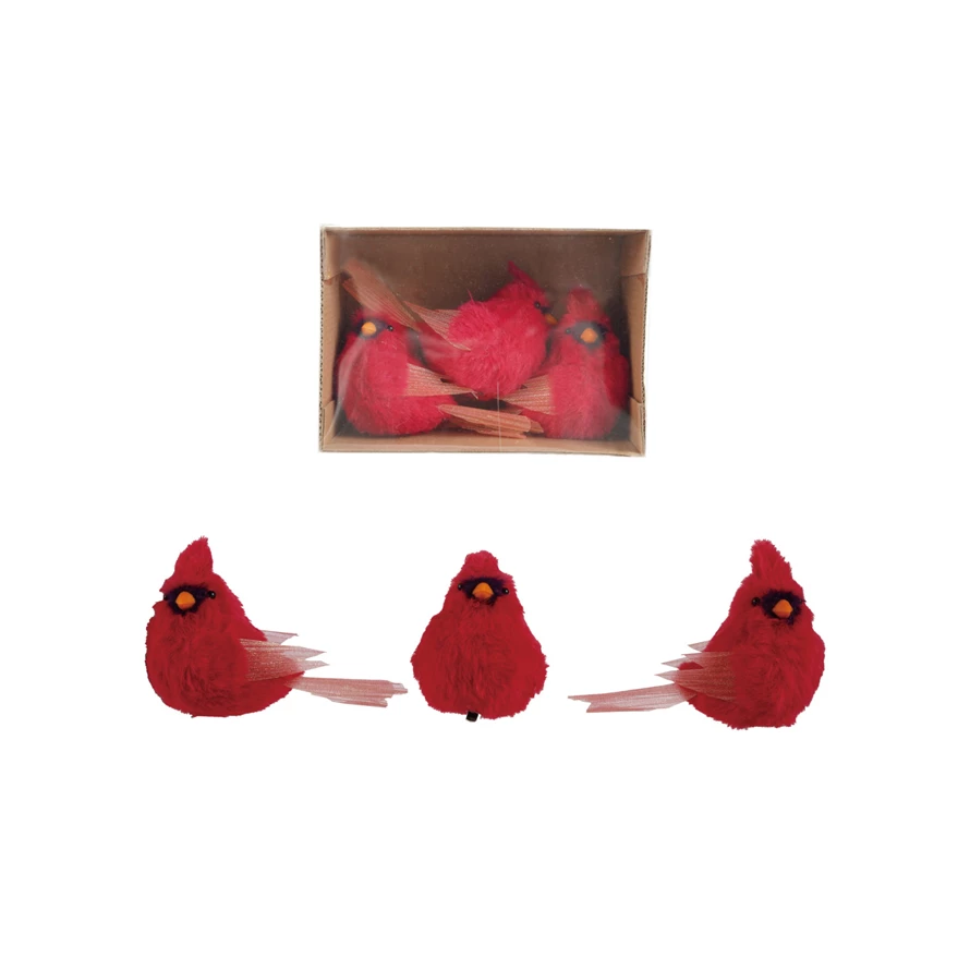 Catalog Name: 5-1/2"L x 4"H Faux Fur & Fabric Cardinal Clip-on Ornaments w/ Glitter, Red, Boxed Set of 3