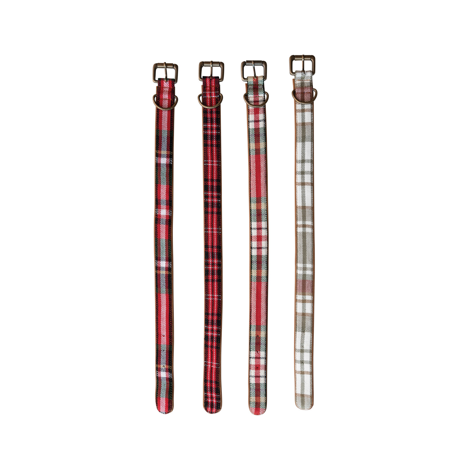 Catalog Name: 22-1/2"L x 1-1/4"W Cotton & Leather Dog Collar w/ Metal Buckle, Multi Color Plaid, 4 Styles, Medium