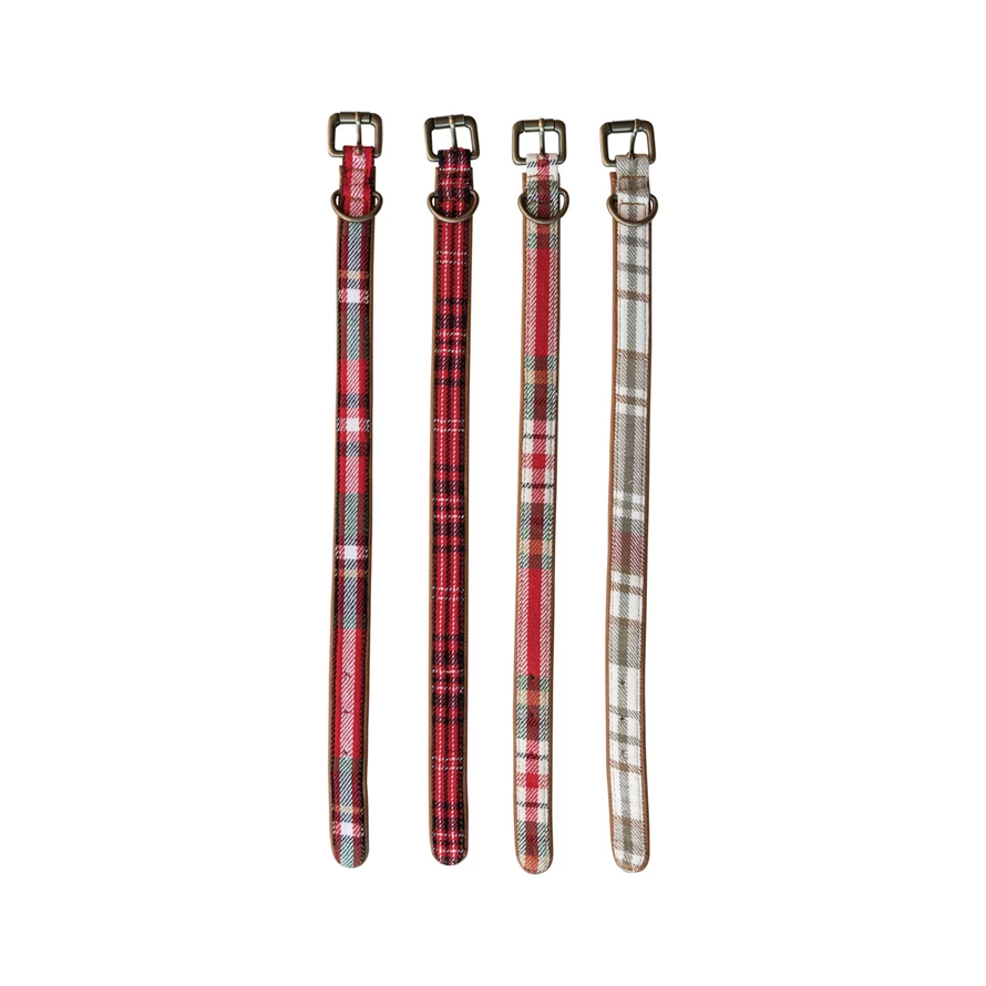 Catalog Name: 25"L x 1-1/4"W Cotton & Leather Dog Collar w/ Metal Buckle, Multi Color Plaid, 4 Styles, Large