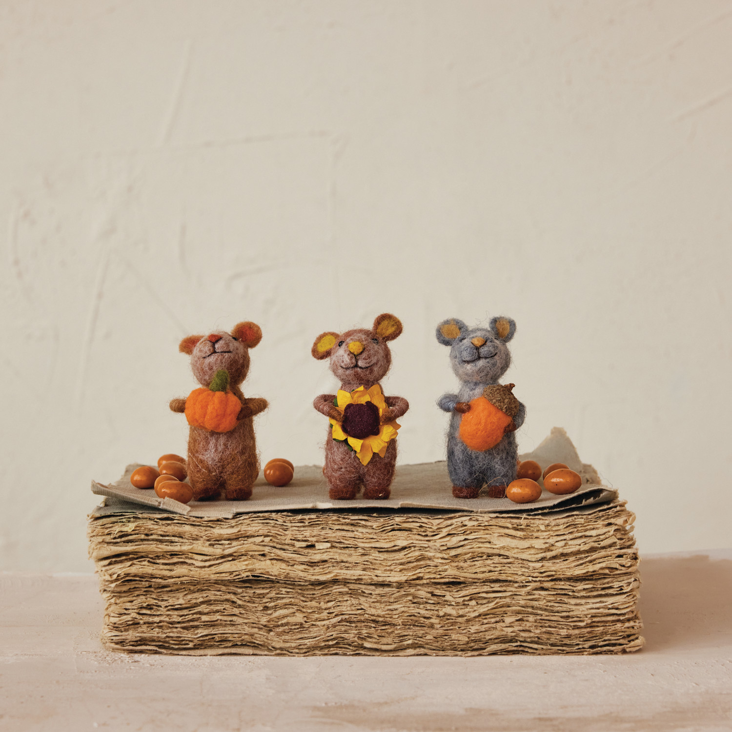 Handmade Wool Felt Mouse with Acorn/Pumpkin/Sunflower, 3 Styles
