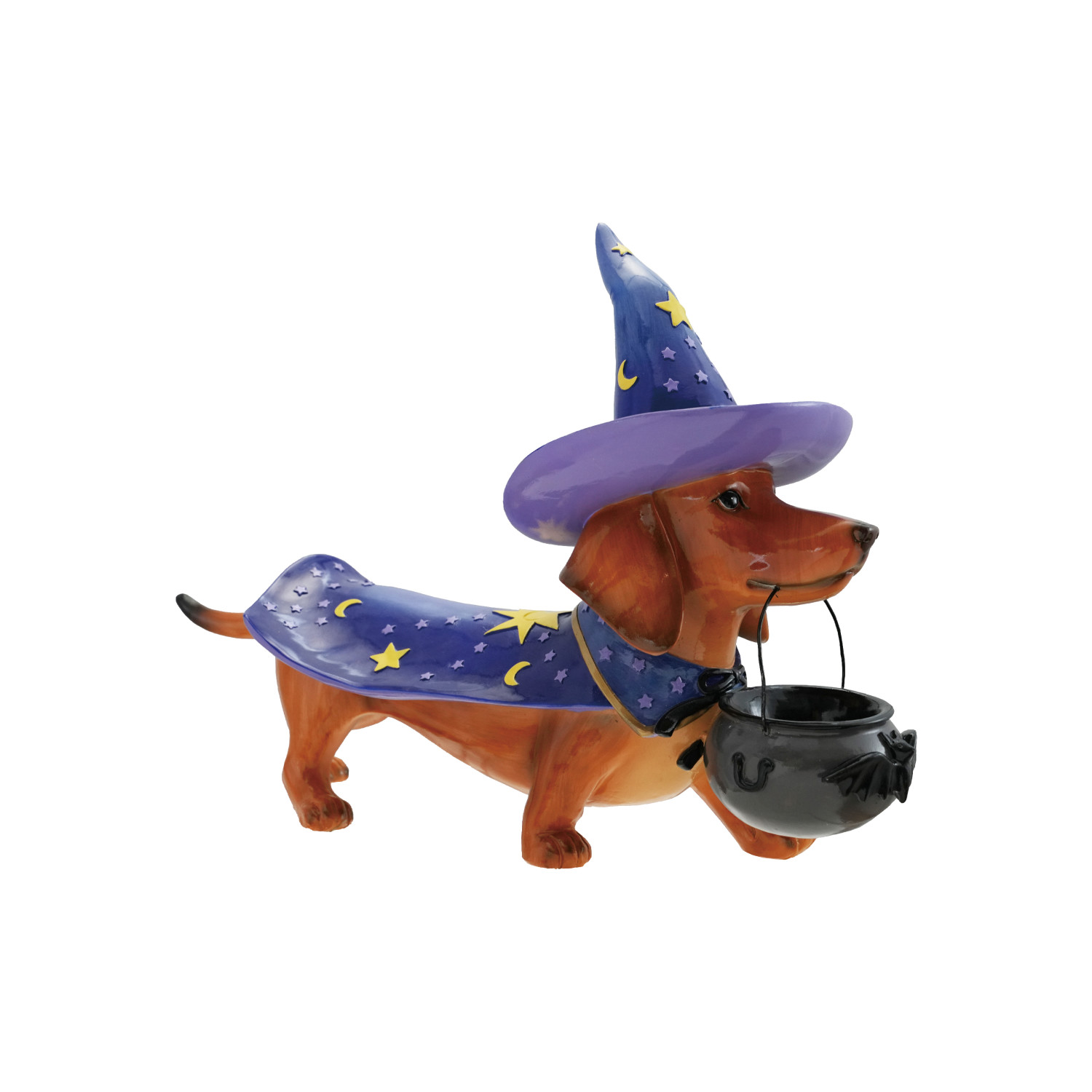 Catalog Name: 22"L x 7-3/4"W x 14-1/4"H Resin Dachshund in Wizard Costume w/ Cauldron, Multi Color