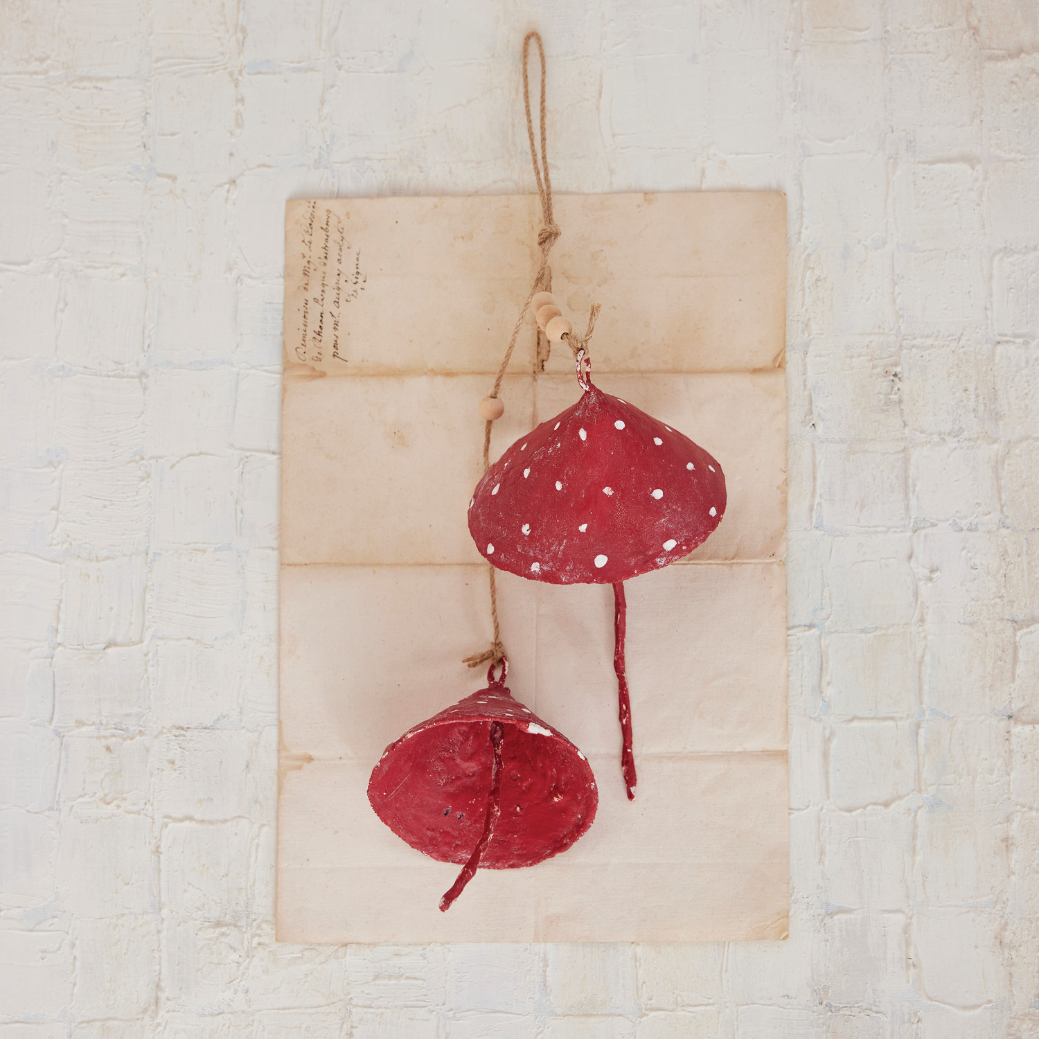 Handmade Metal & Paper Mache Mushrooms Ornament with Wood Beads