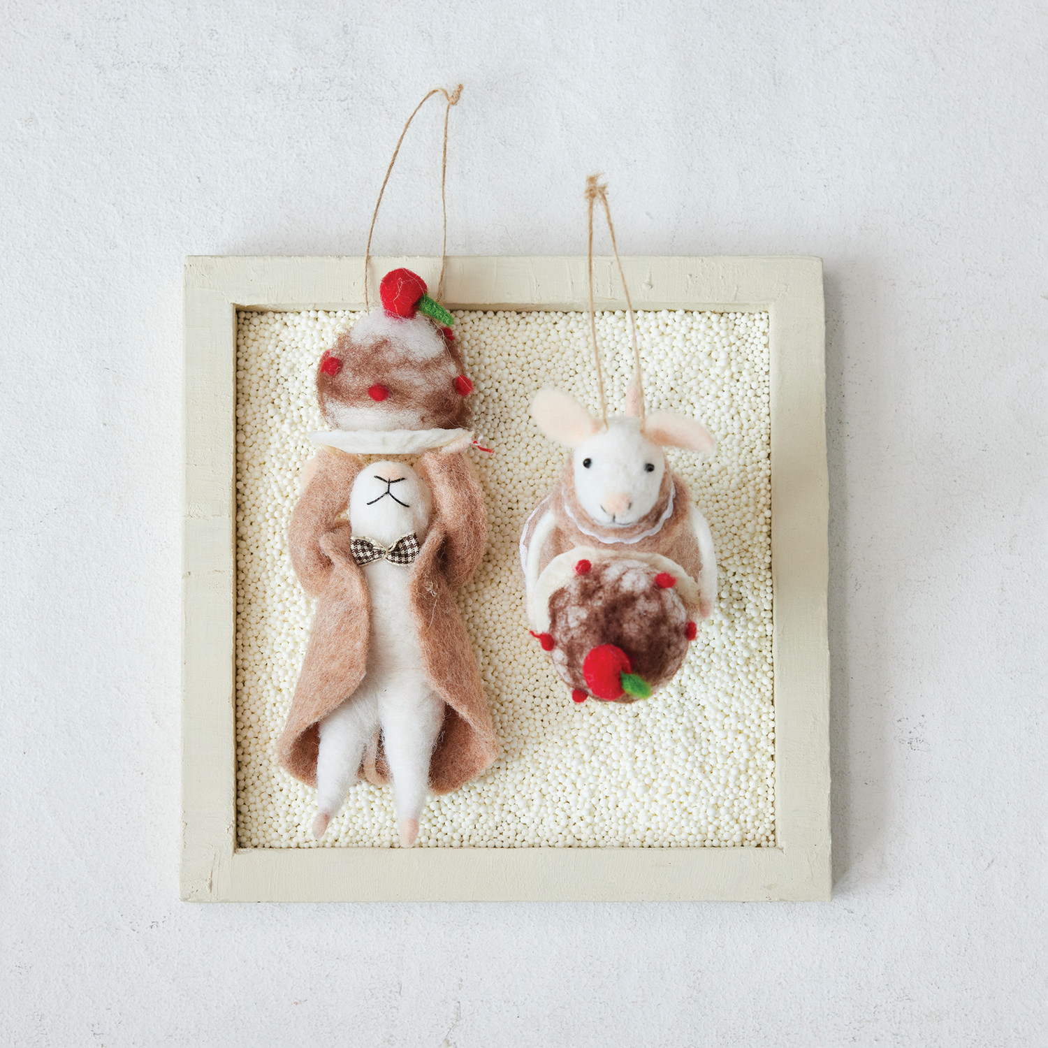 Catalog Name: 4-3/4"H - 6-1/4"H Handmade Wool Felt Mouse w/ Cake Ornament, Multi Color, 2 Styles