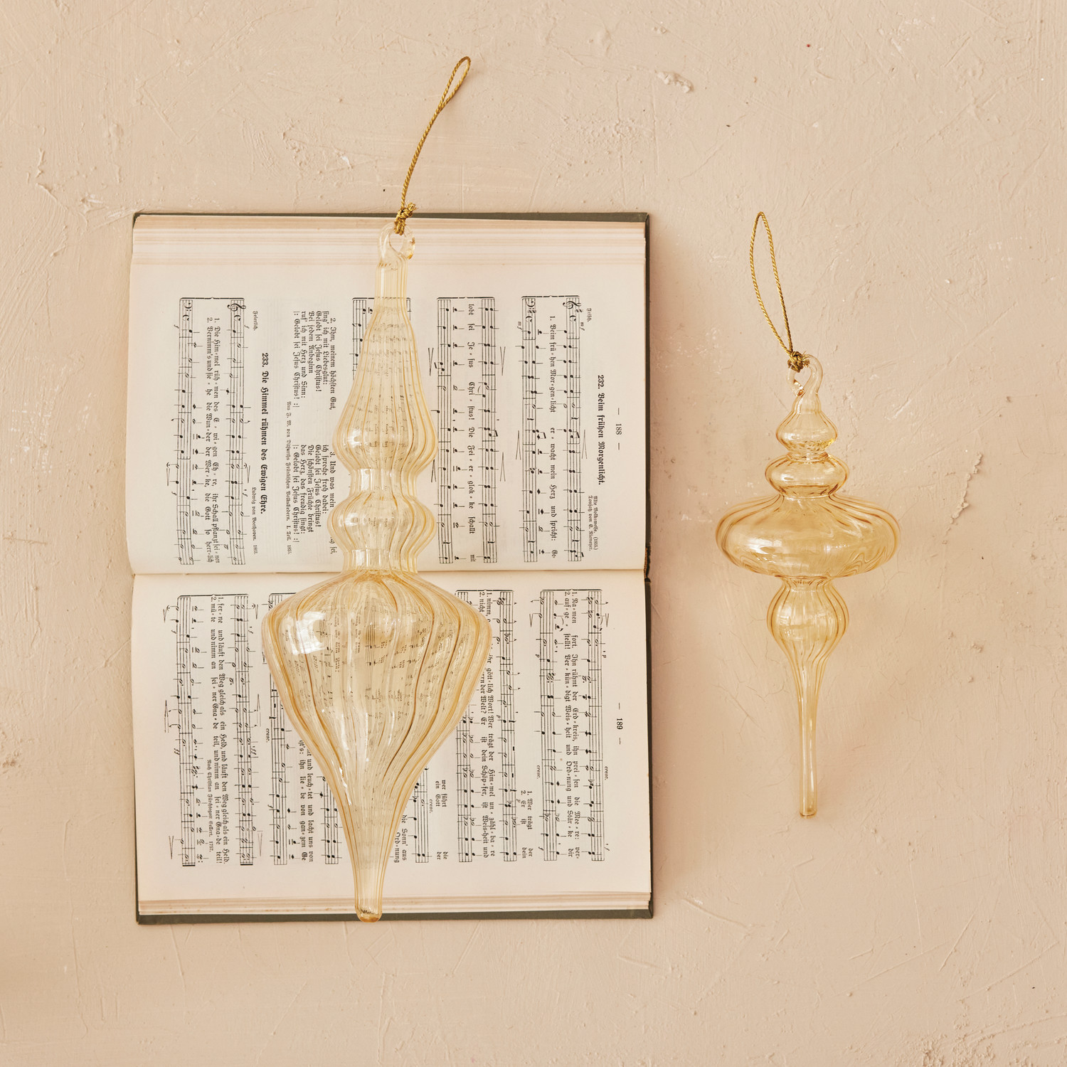 9"H Blown Glass Finial Ornament, Butterscotch Color