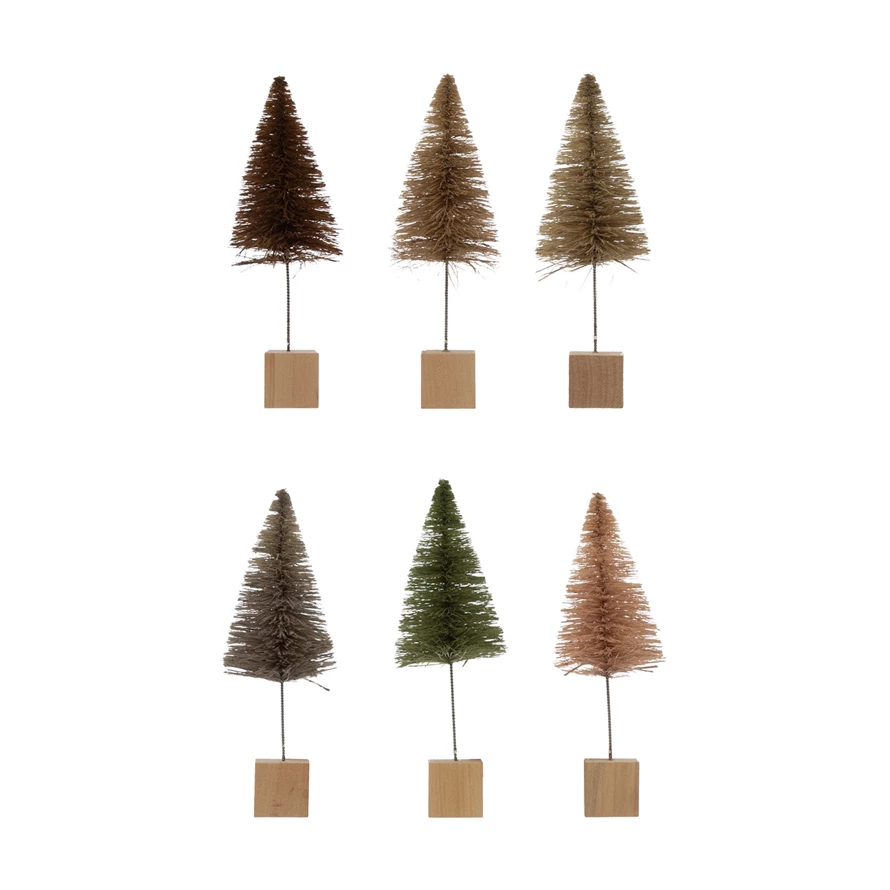 2-1/2" Round x 7"H Sisal Bottle Brush Tree with Wood Base, 6 Colors