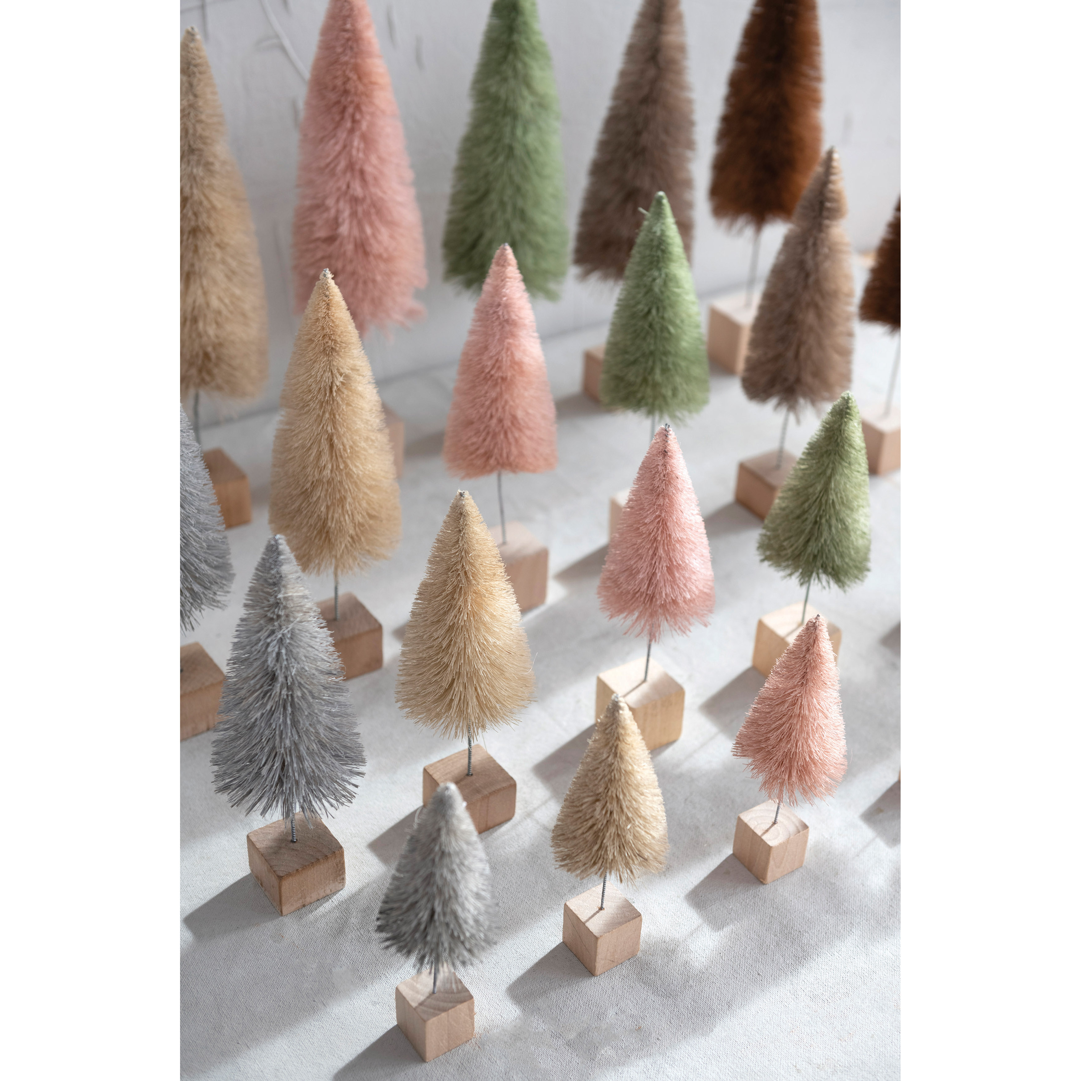 3" Round x 11"H Sisal Bottle Brush Tree with Wood Base, 6 Colors