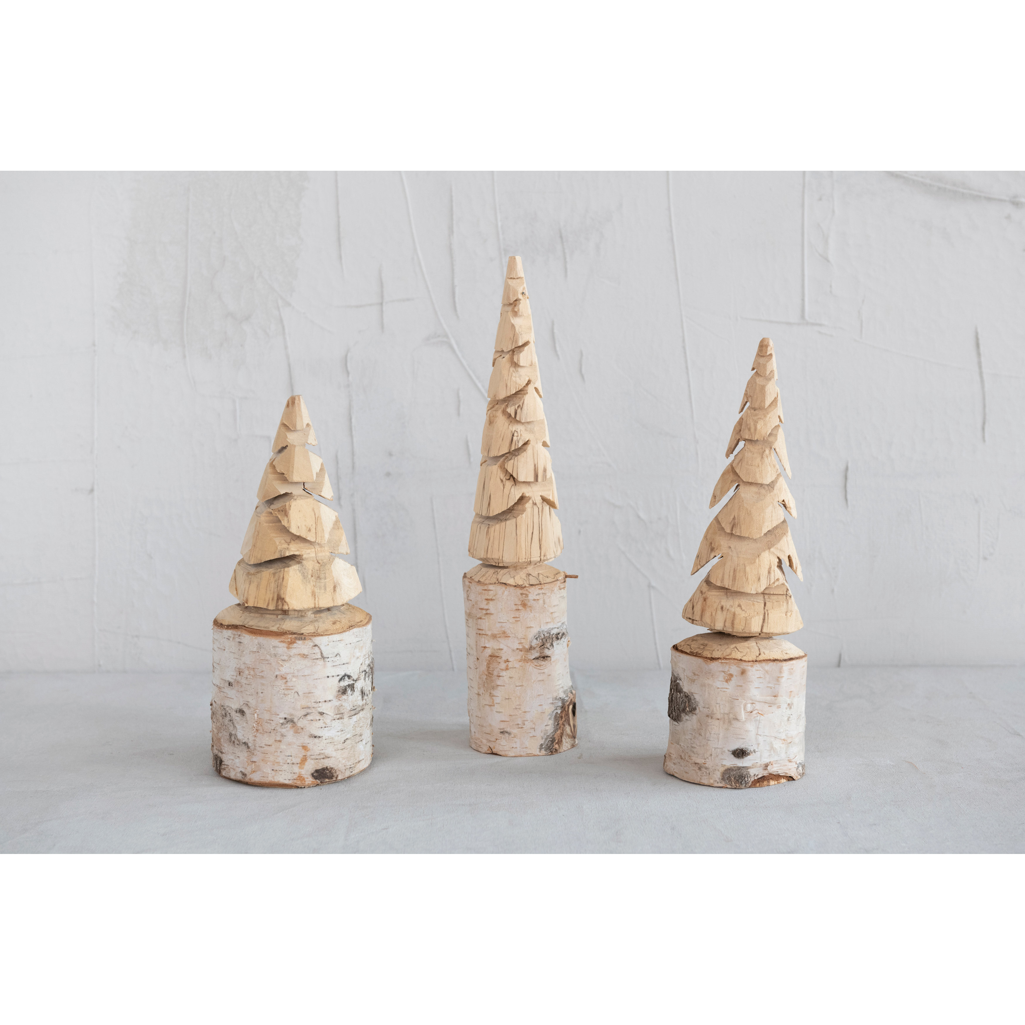 3" Round x 14"H Hand-Carved Birch Wood Tree with Wood Base