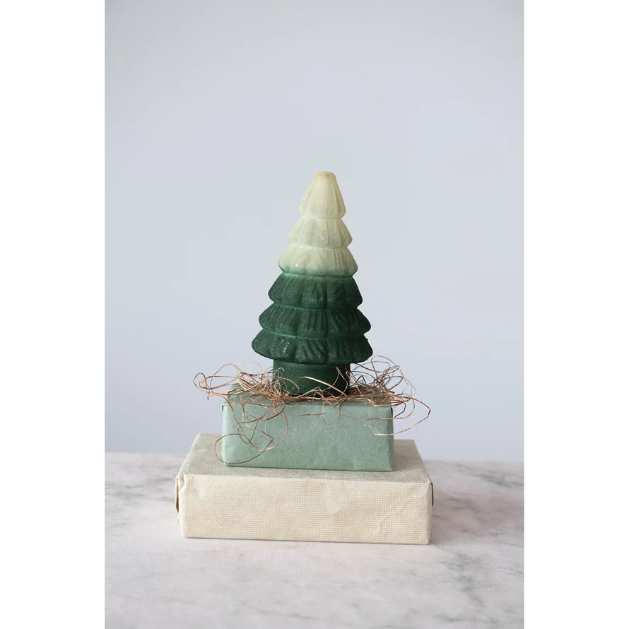 4-1/2" Round x 8-3/4"H Glass Tree with Seed Beads, Frosted Green Ombre