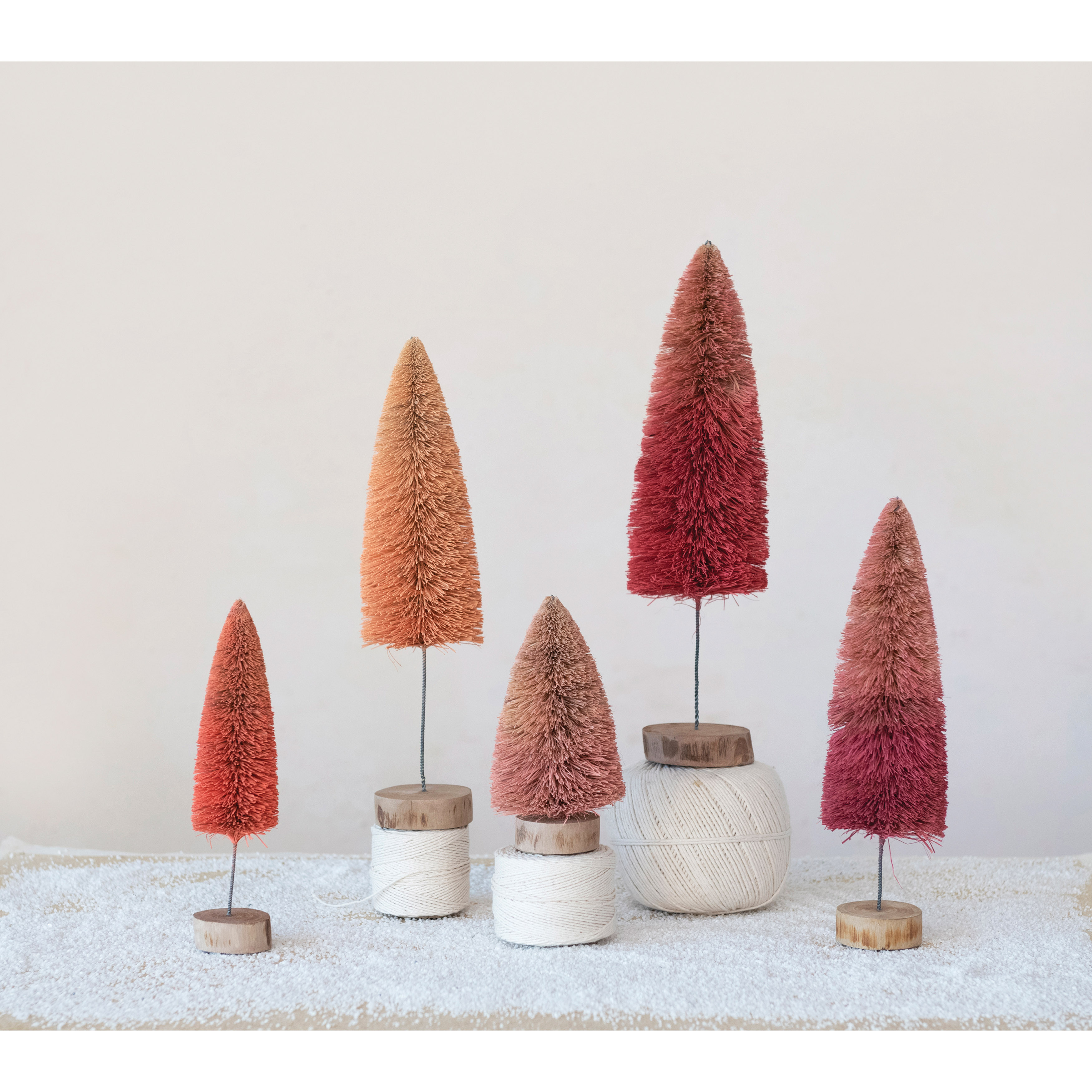 Catalog Name: 4" Round x 12"H Bottle Brush Tree with Wood Base, Peach Color
